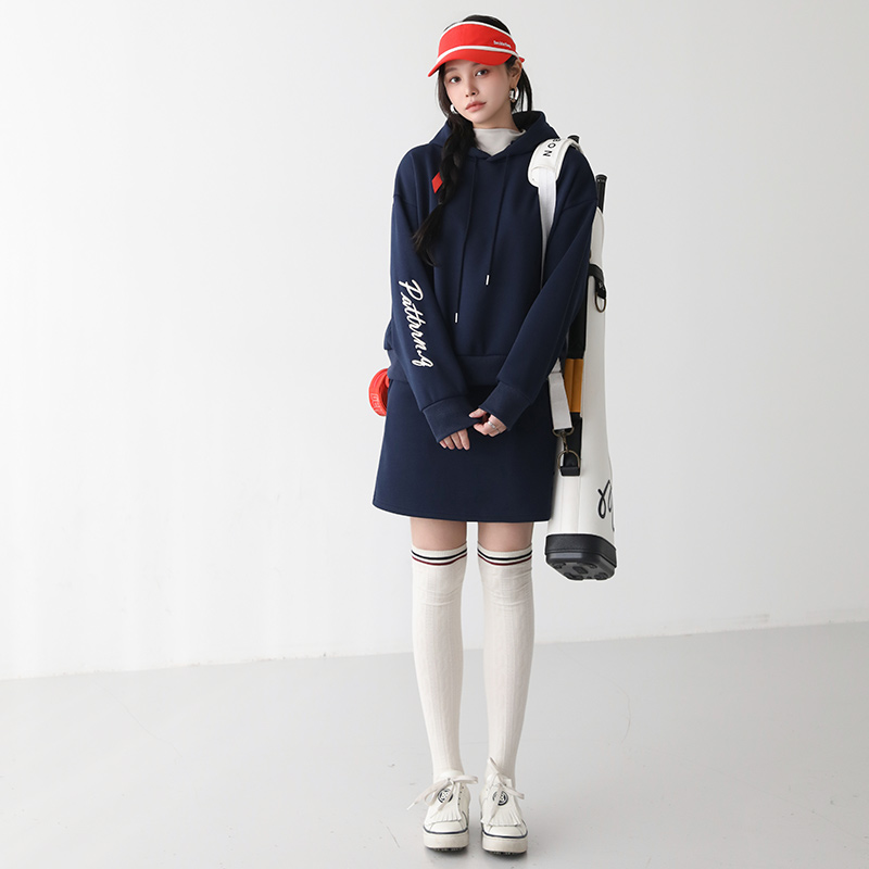 - 후드 소매와 스커트 뒷포켓에 레터링 자수 포인트가 들어가 스타일리시한 디자인