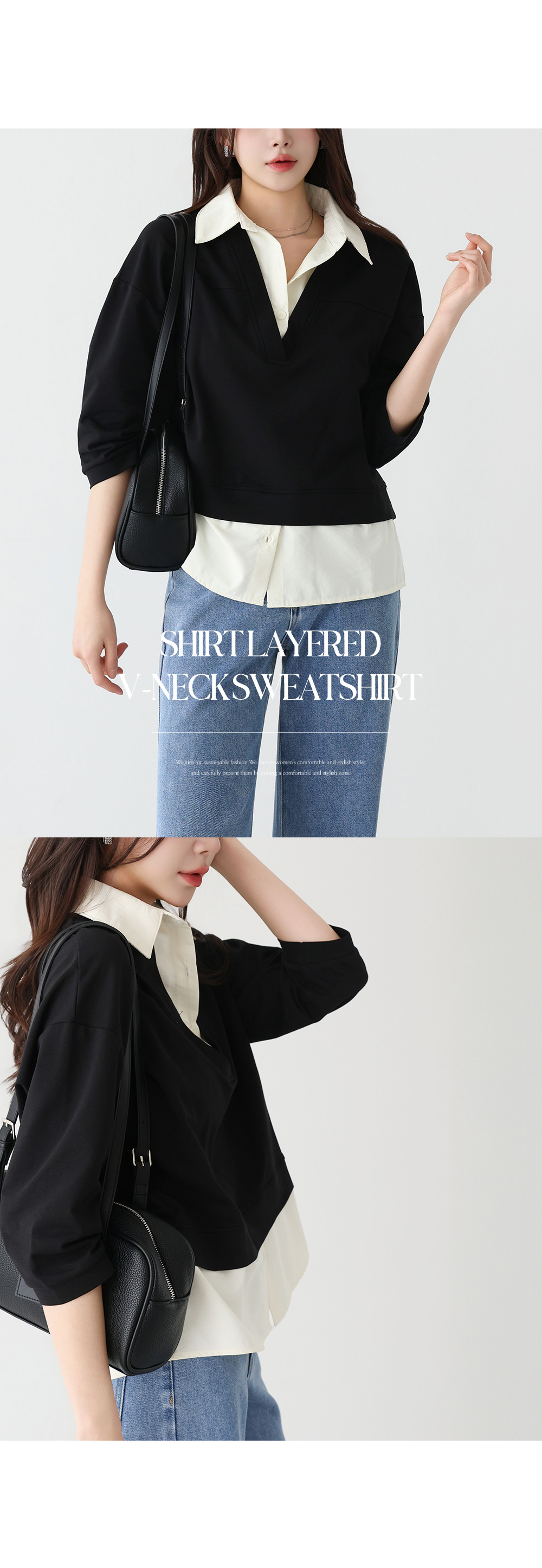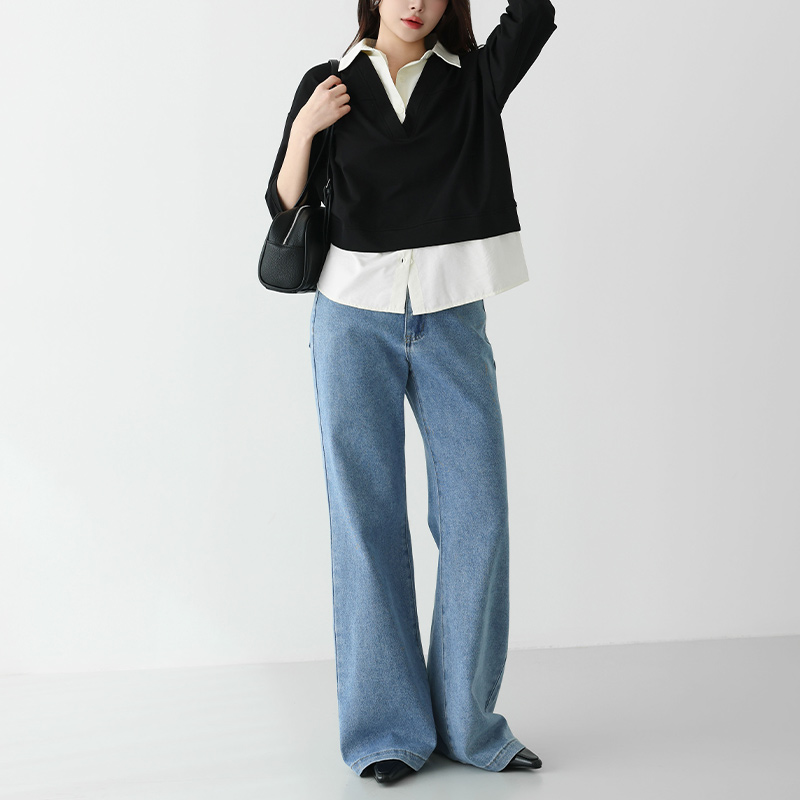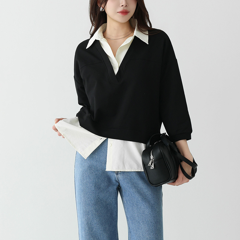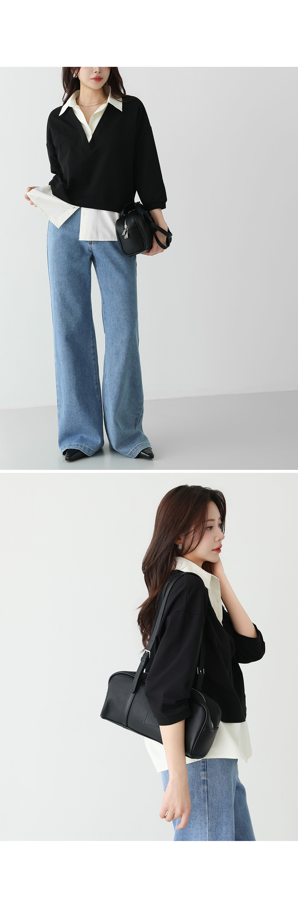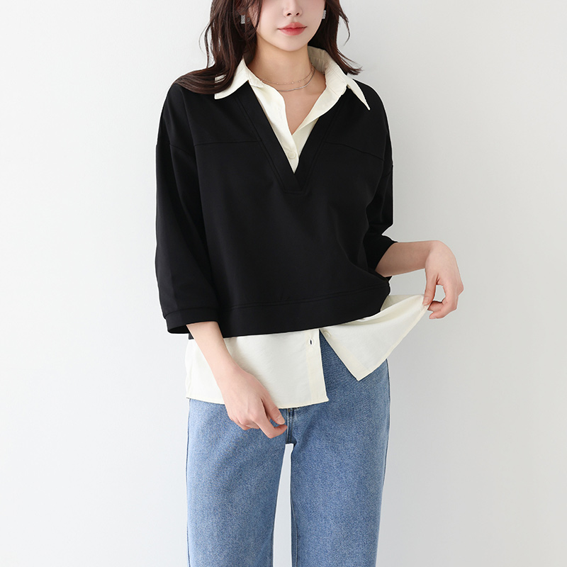 - 셔츠를 레이어드한 듯한 카라 배색 디테일을 더해 단독 착용만으로도 포인트가 되는 아이템