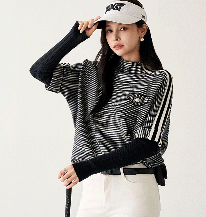 [골프&일상] 잔체크 레이어드 폴라 니트 #112560
