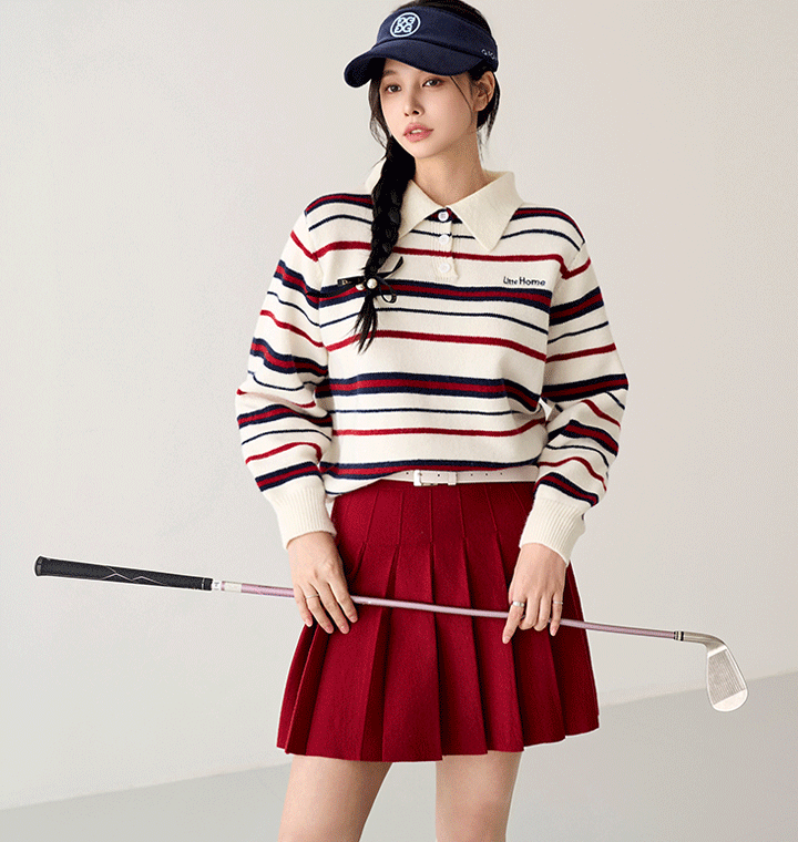 [패턴퀸 GOLF] 두줄 카라넥 A라인 스커트 셋업 #96401