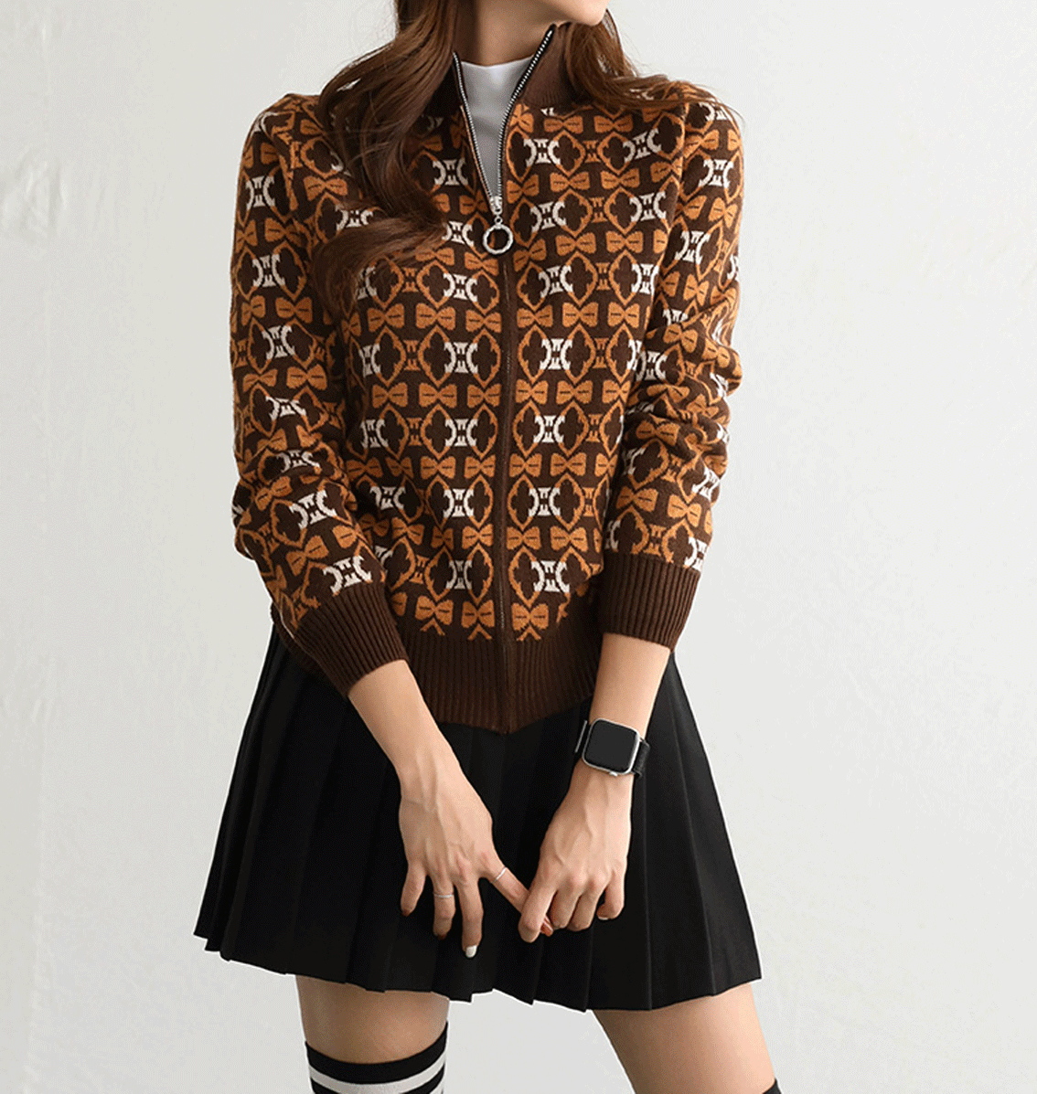 [패턴퀸 GOLF] 목폴라 패턴 니트 집업 #66504