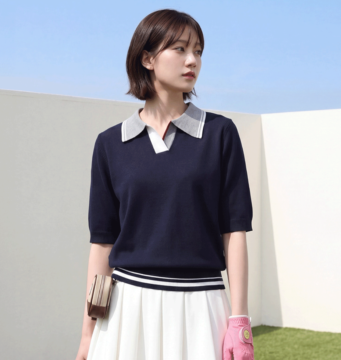 [골프&일상] 배색 카라 반팔 니트 #112980