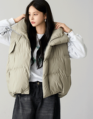 하이넥 스트링 루즈핏 패딩 조끼 #66726