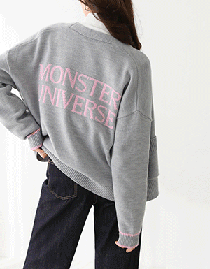 브이넥 백라인 배색 레터링 니트 가디건 #22564