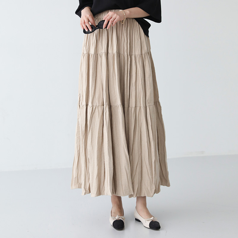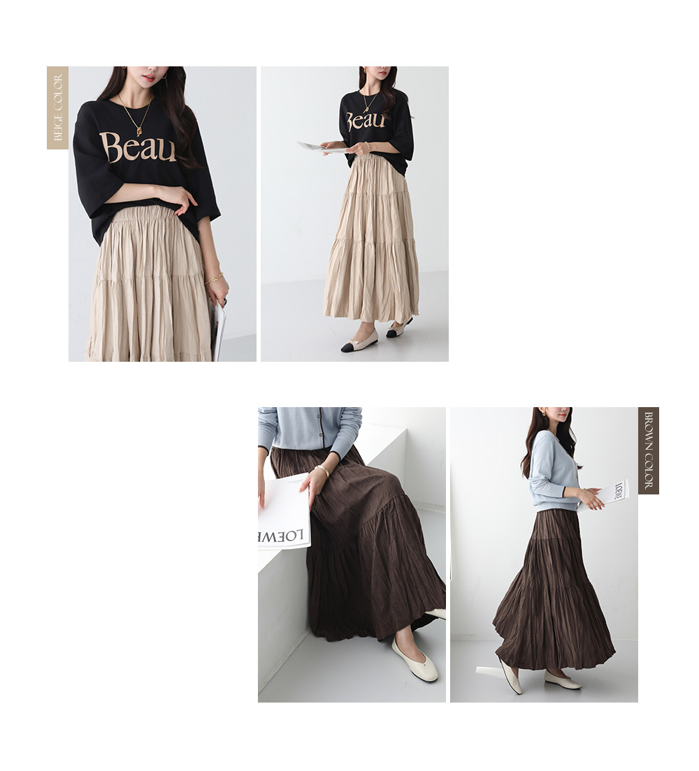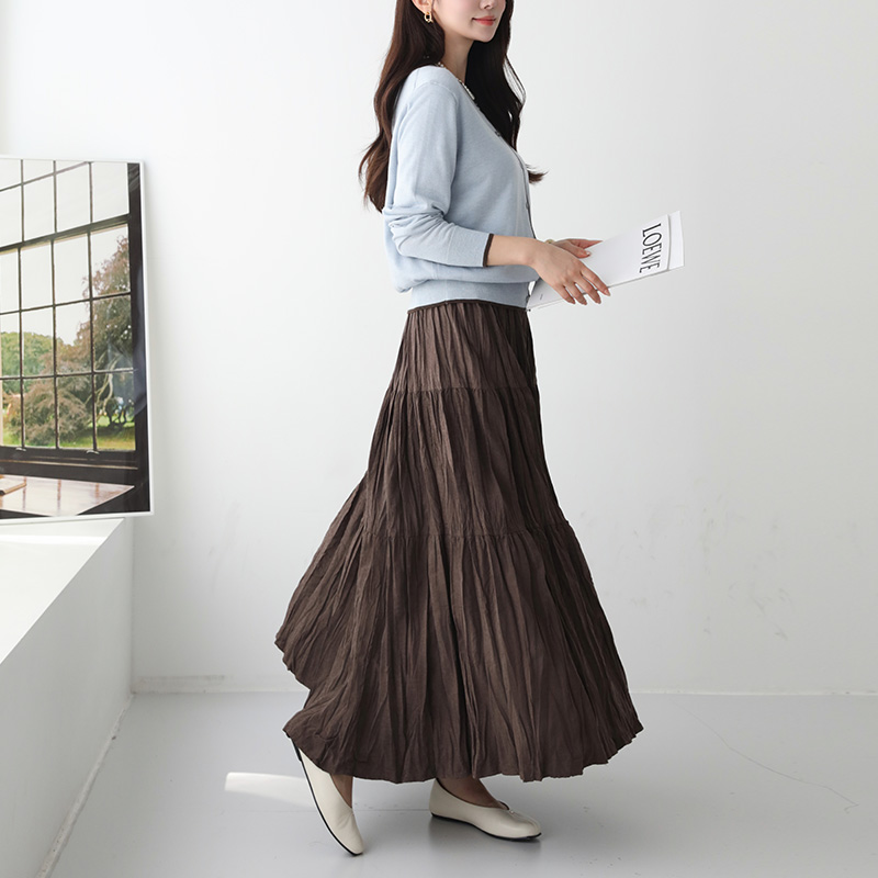 플레어 링클 롱 스커트 #53459