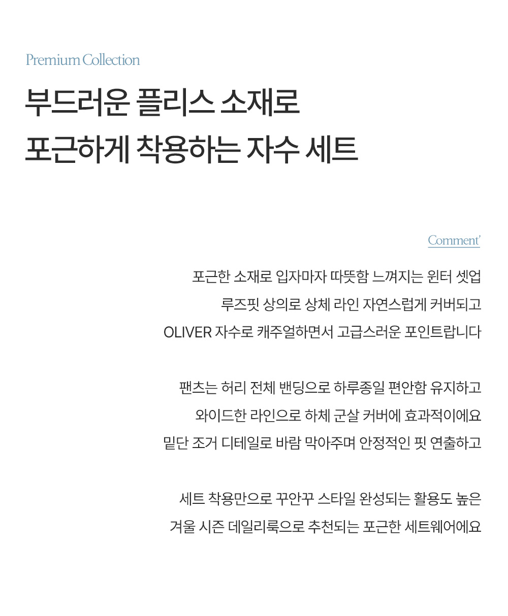 - 부드러운 소재로 입는 순간 따뜻함이 느껴지는 세트