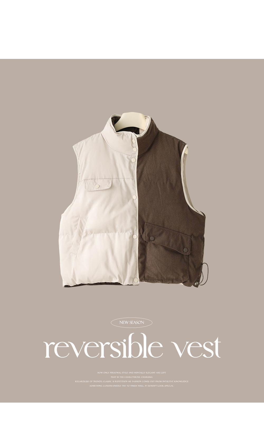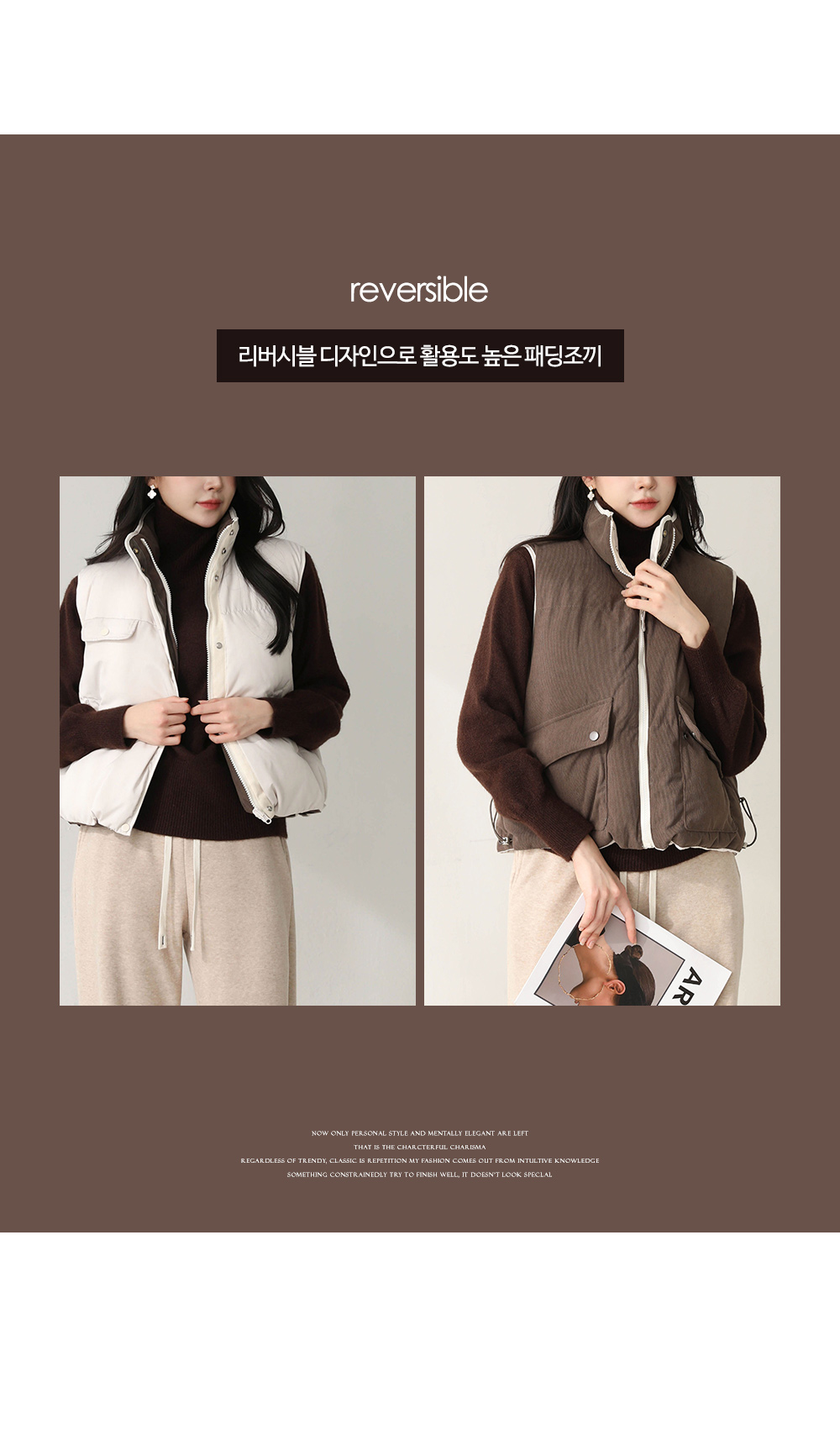 리버시블 디자인으로 하나의 옷에서 두 가지 스타일을 제공하죠