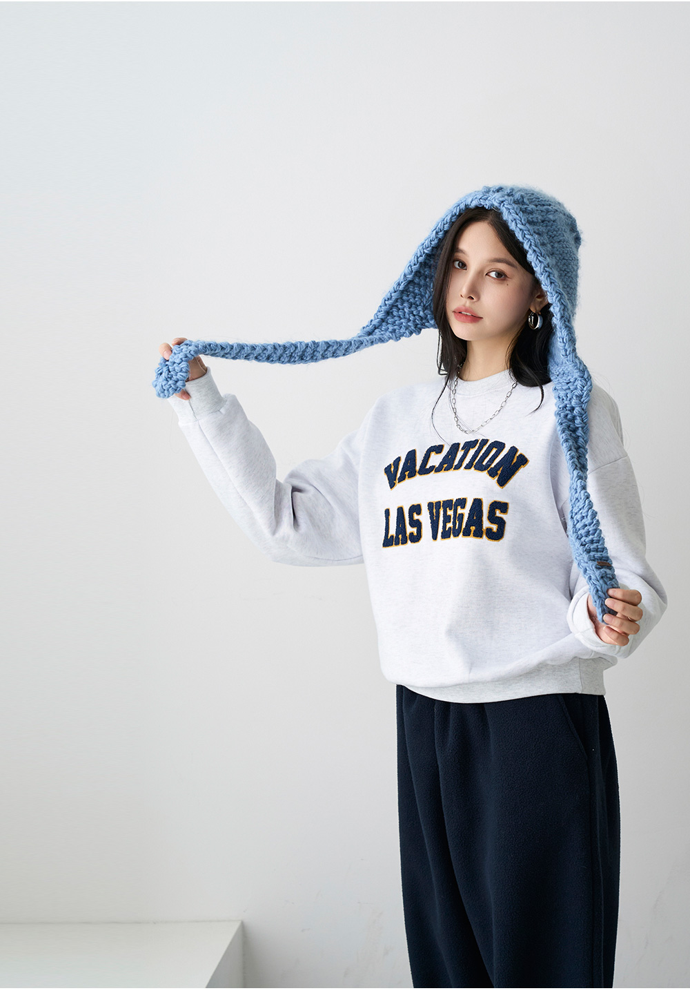 - 포실포실 덤블 소재의 레터링 디테일로 코지한 무드 연출
