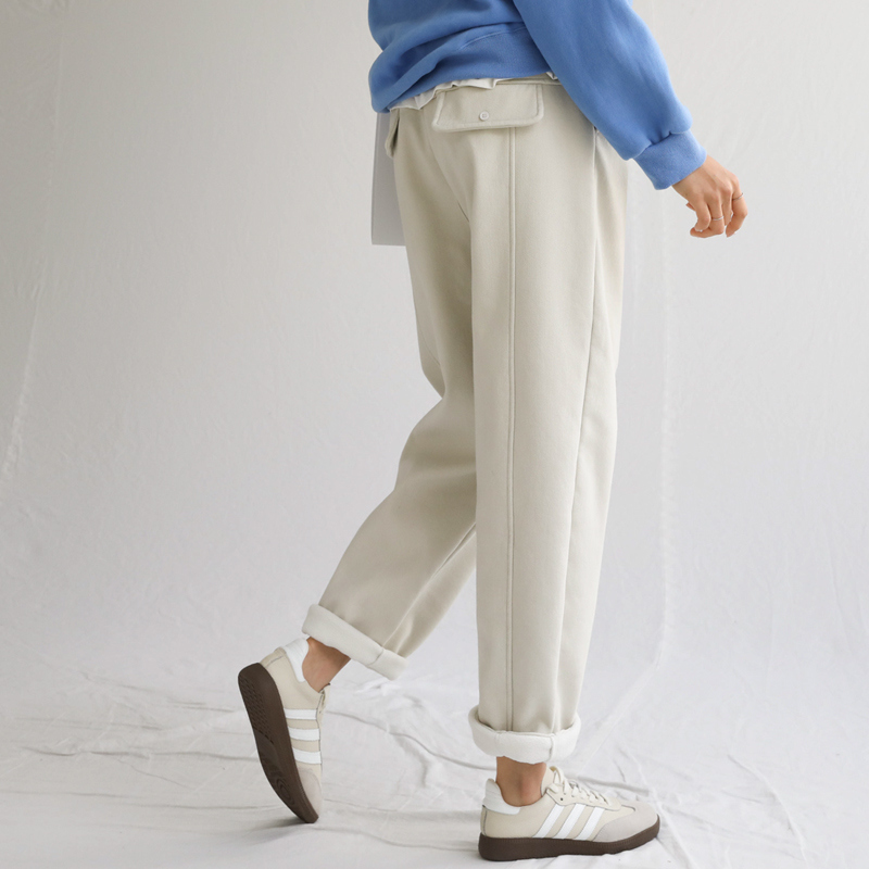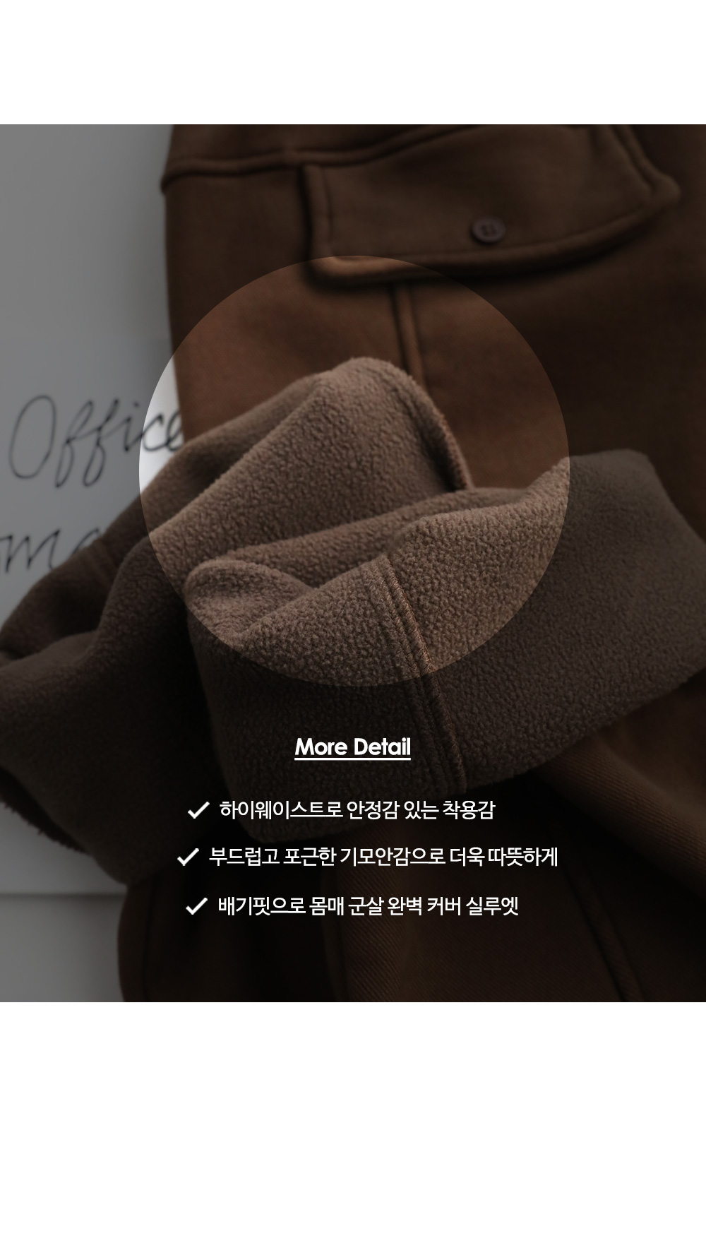 다른 팬츠들은 기모 소재가 뻣뻣할 수 있는데 이 제품은 달라요