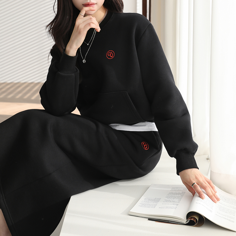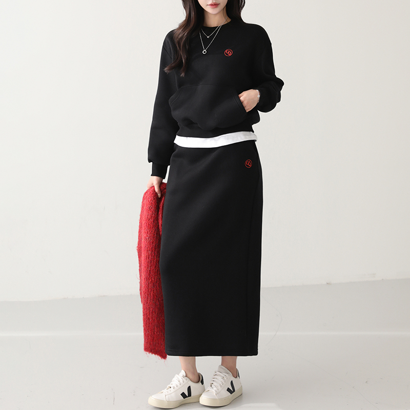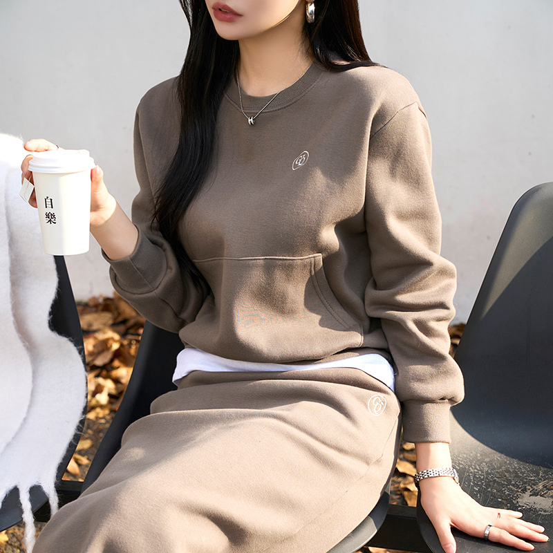 - 가슴과 치마 포켓 부분의 원형 자수는 여성스러움을 강조하고 고급스러워요