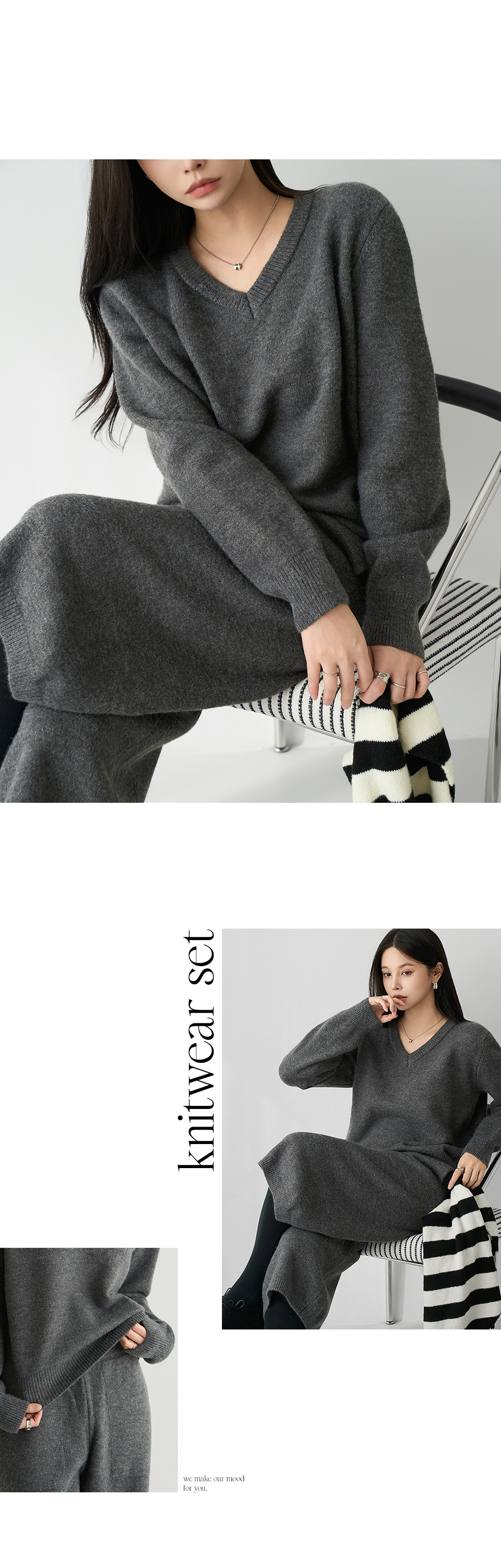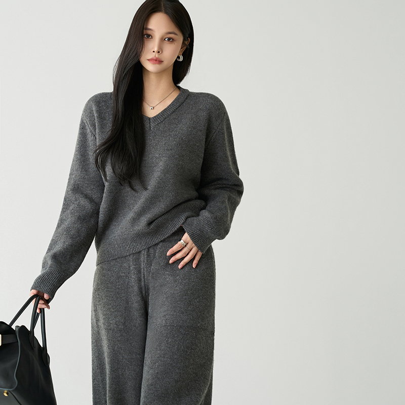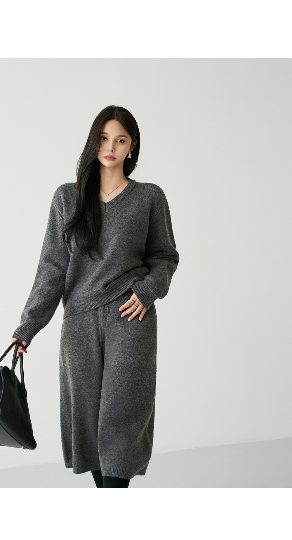 238212 브이넥 니트 & 8부 와이드 팬츠 세트 #96409 52900