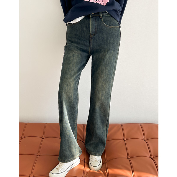 자체제작/ 밍크 기모 스판 일자핏 데님 팬츠 #710240