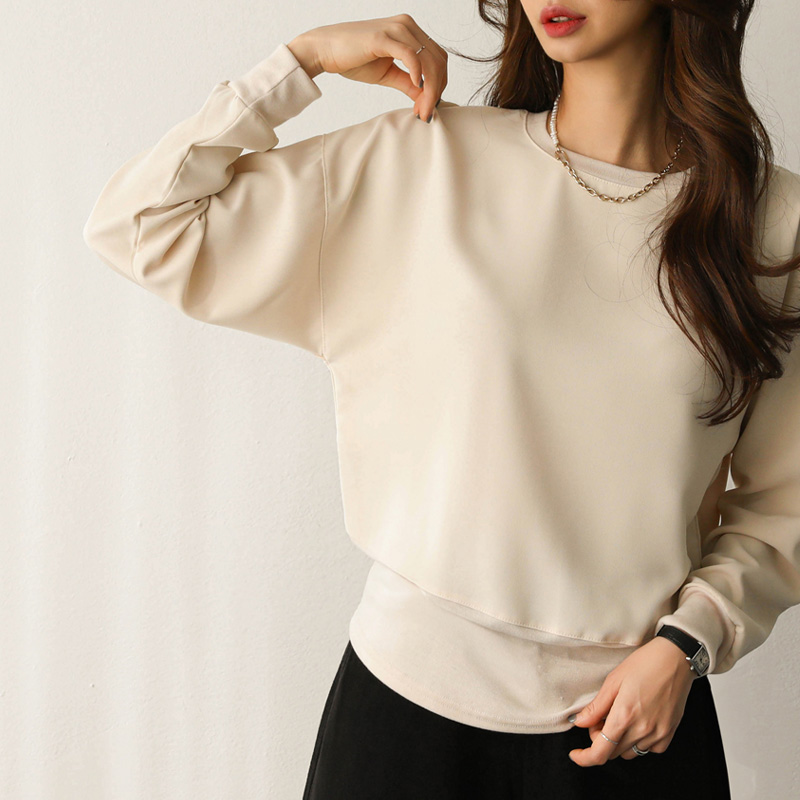 소매와 밑단의 레이온 소재가 부드러운 실루엣을 연출해줘요