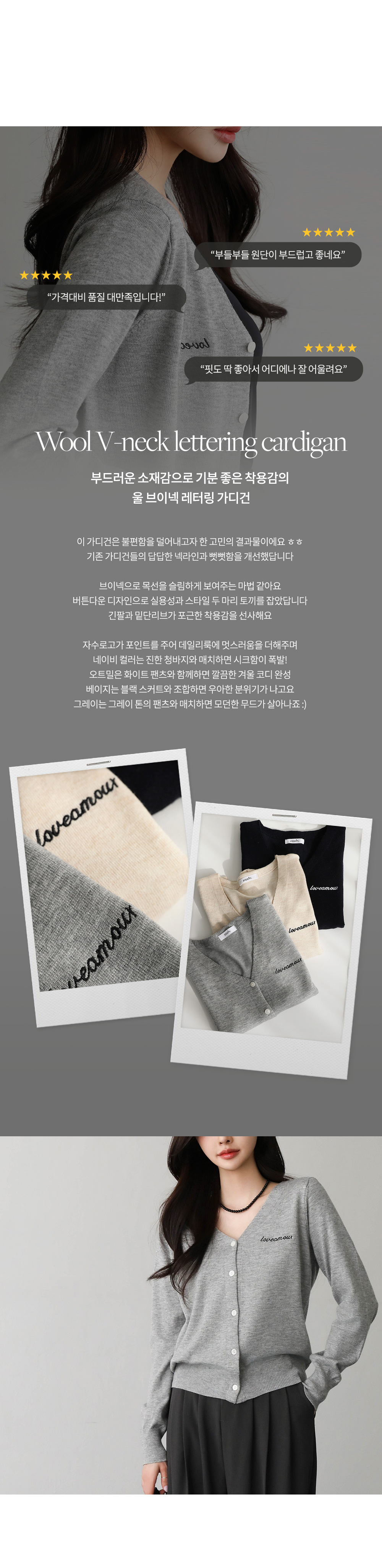 기존 가디건들의 답답한 넥라인과 뻣뻣함을 개선했답니다