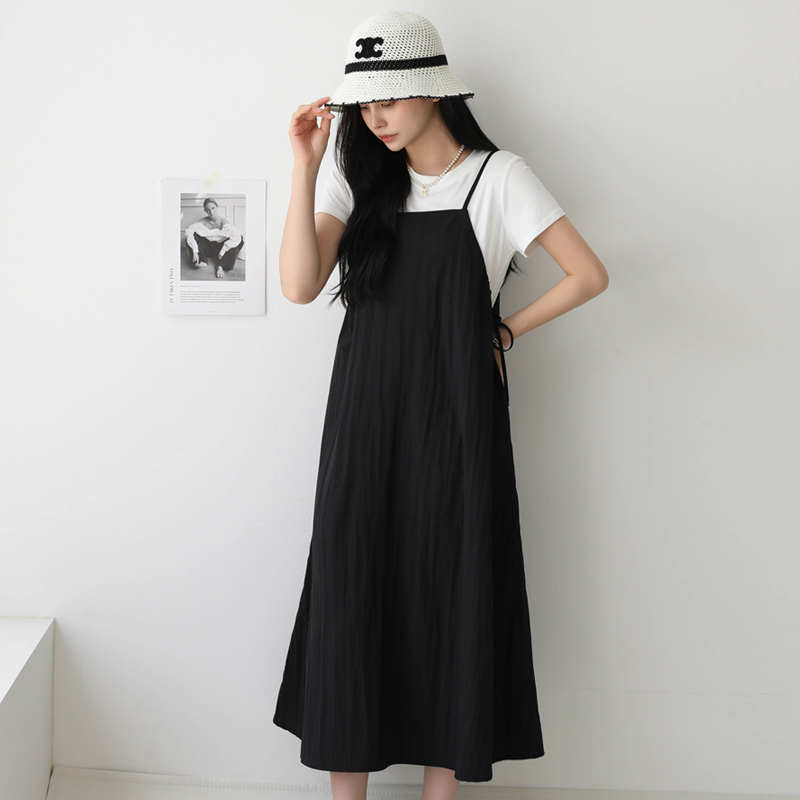반팔티와 조끼원피스의 세트 구성으로 다양한 스타일링이 가능해져요~