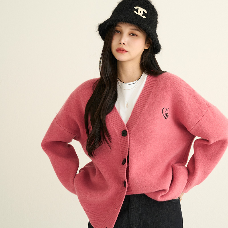 자체제작/ 오버핏 브이넥 하트자수 가디건 #22507