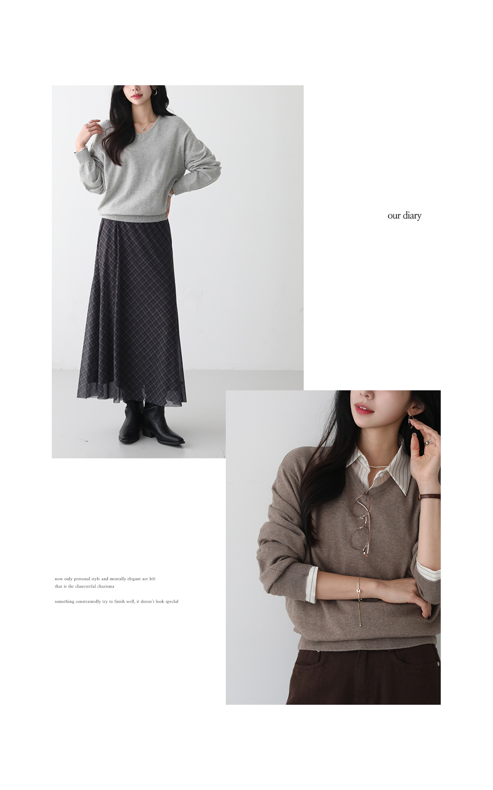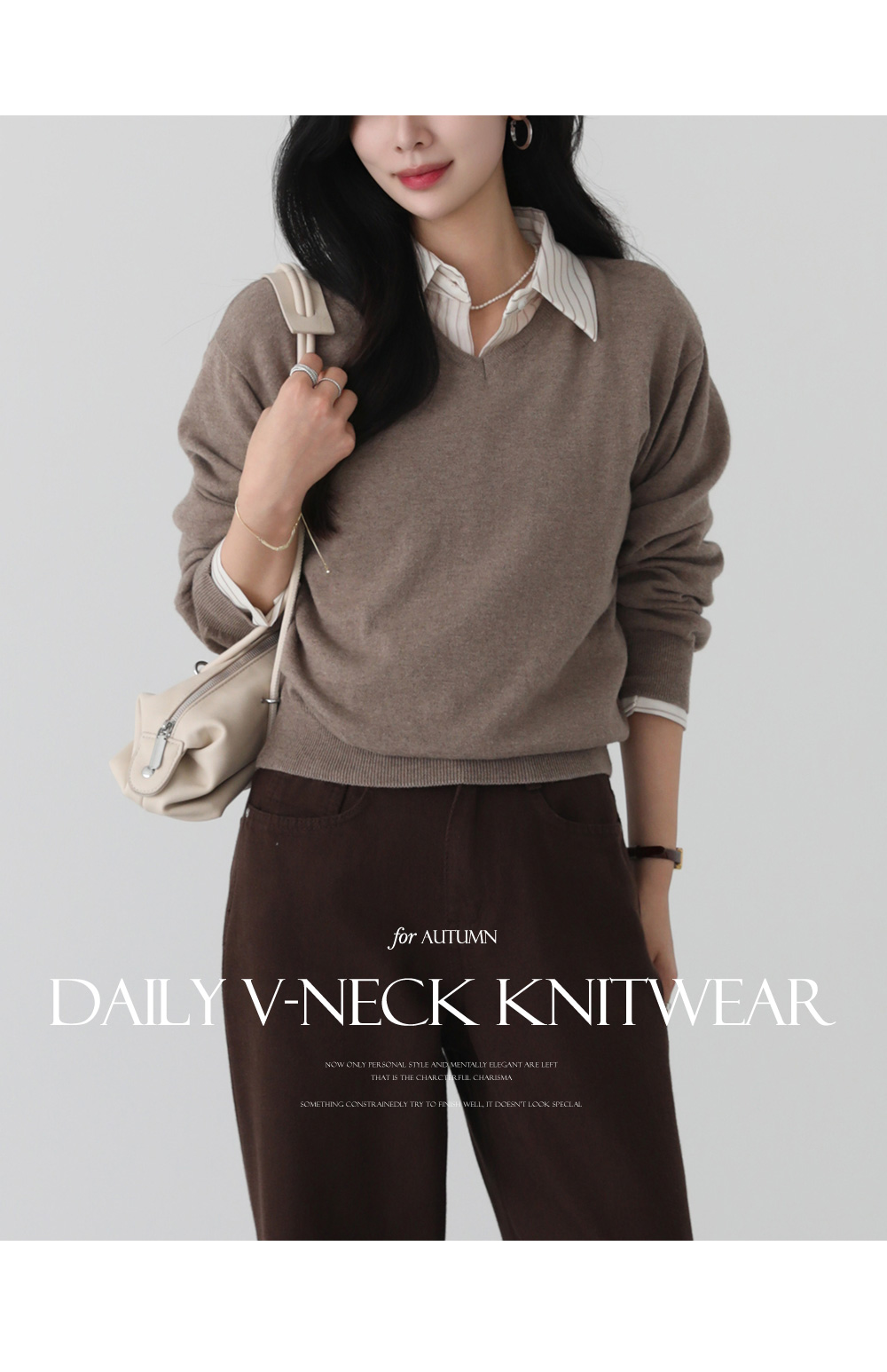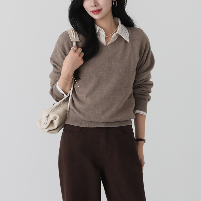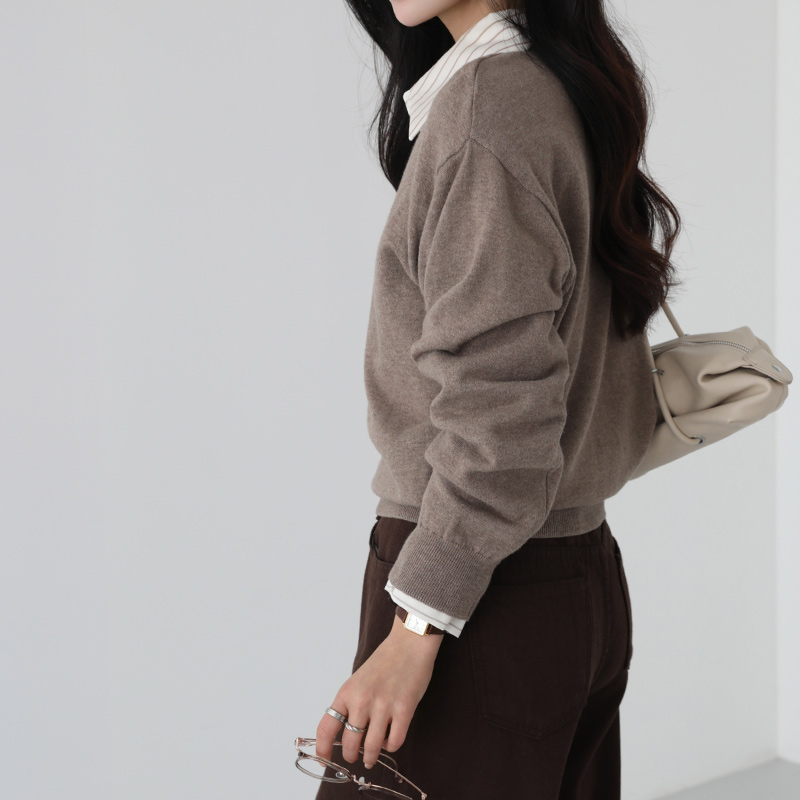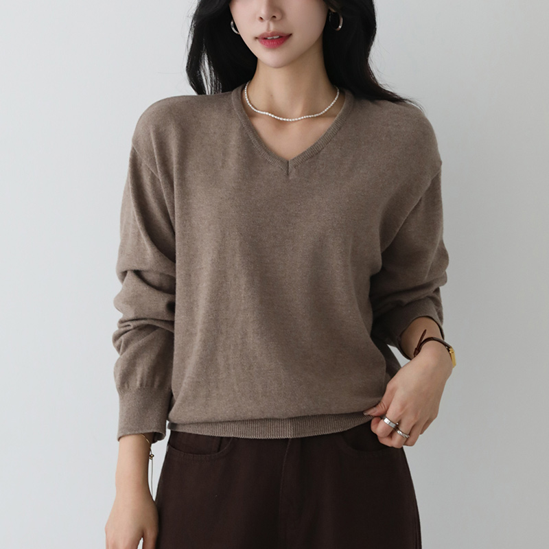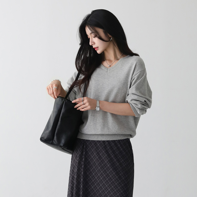 - 브이넥과 드롭된 숄더라인, 적당히 여유있는 폼으로 여리여리한 실루엣