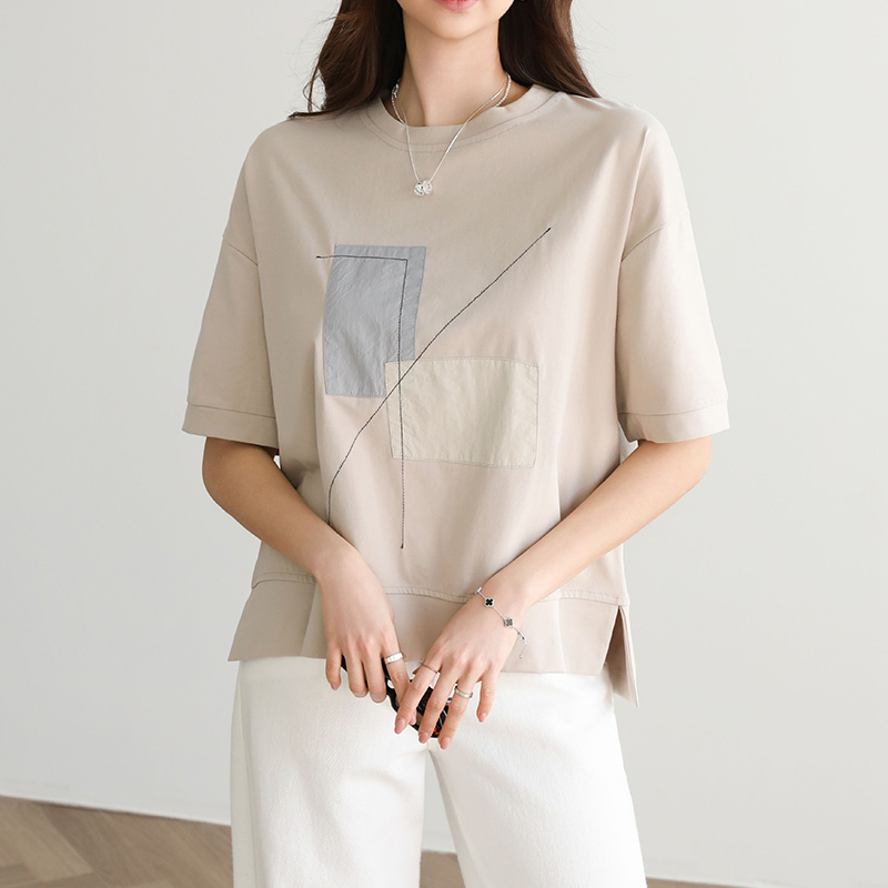 - 배색 패치 포인트 반팔 티셔츠