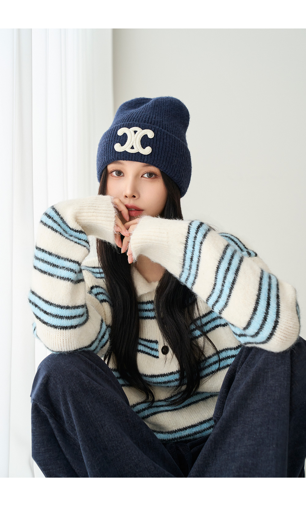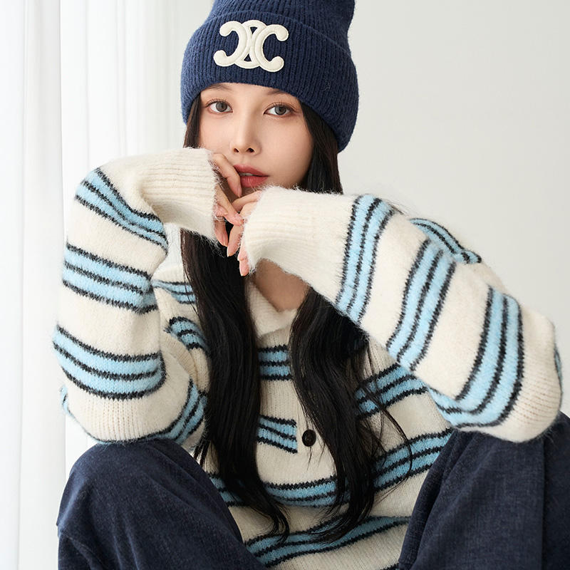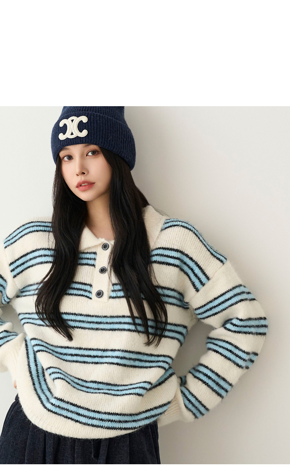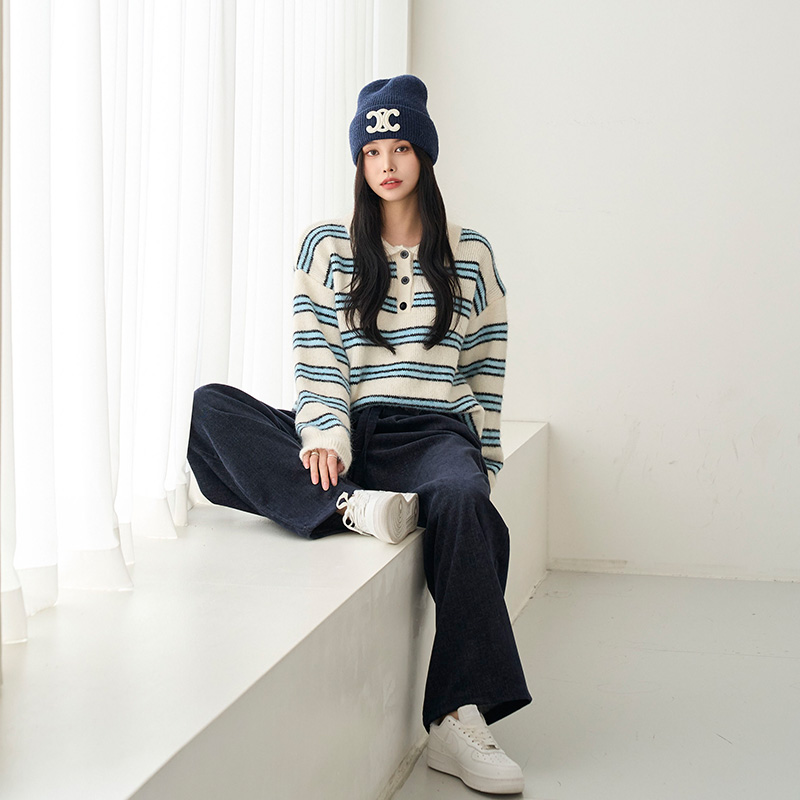 [메르시마리에] 카라 버튼 울혼방 스트라이프 니트 #112583