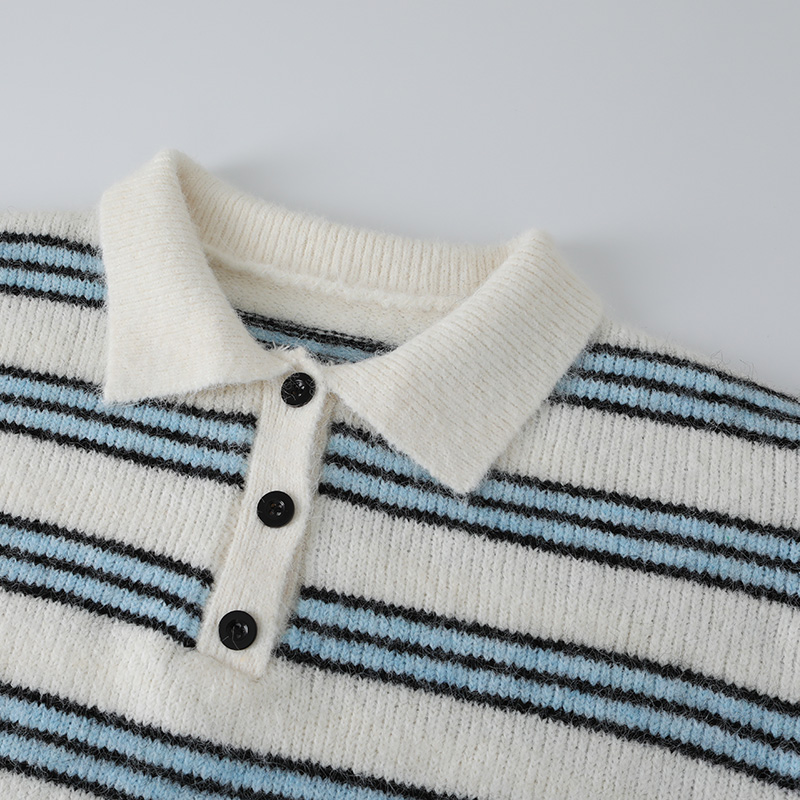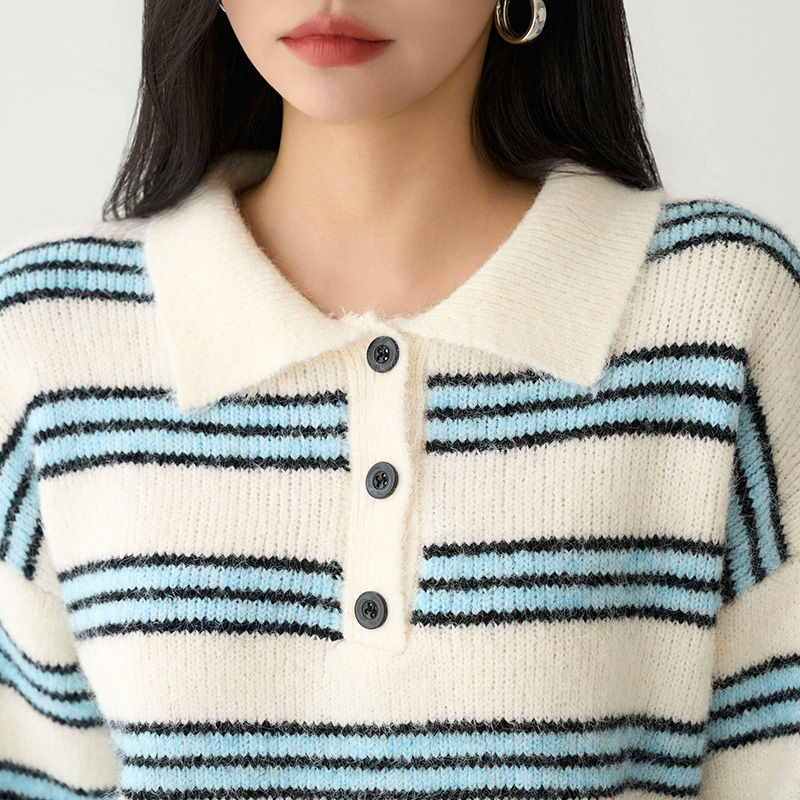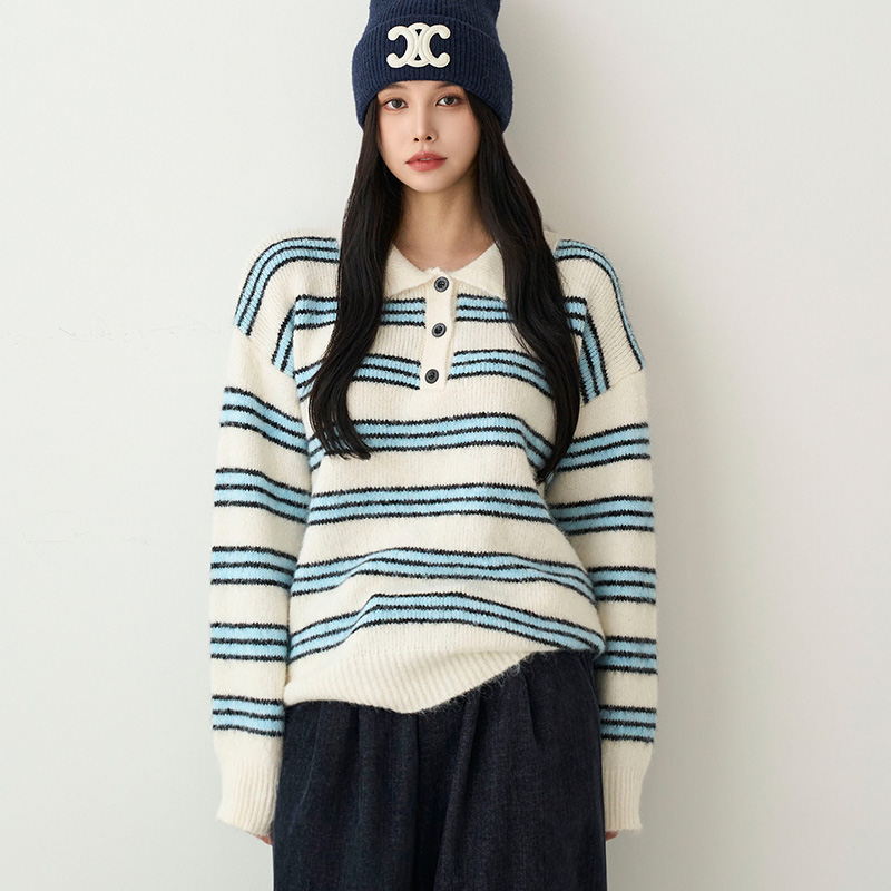 238026 [메르시마리에] 카라 버튼 울혼방 스트라이프 니트 #112583 31900