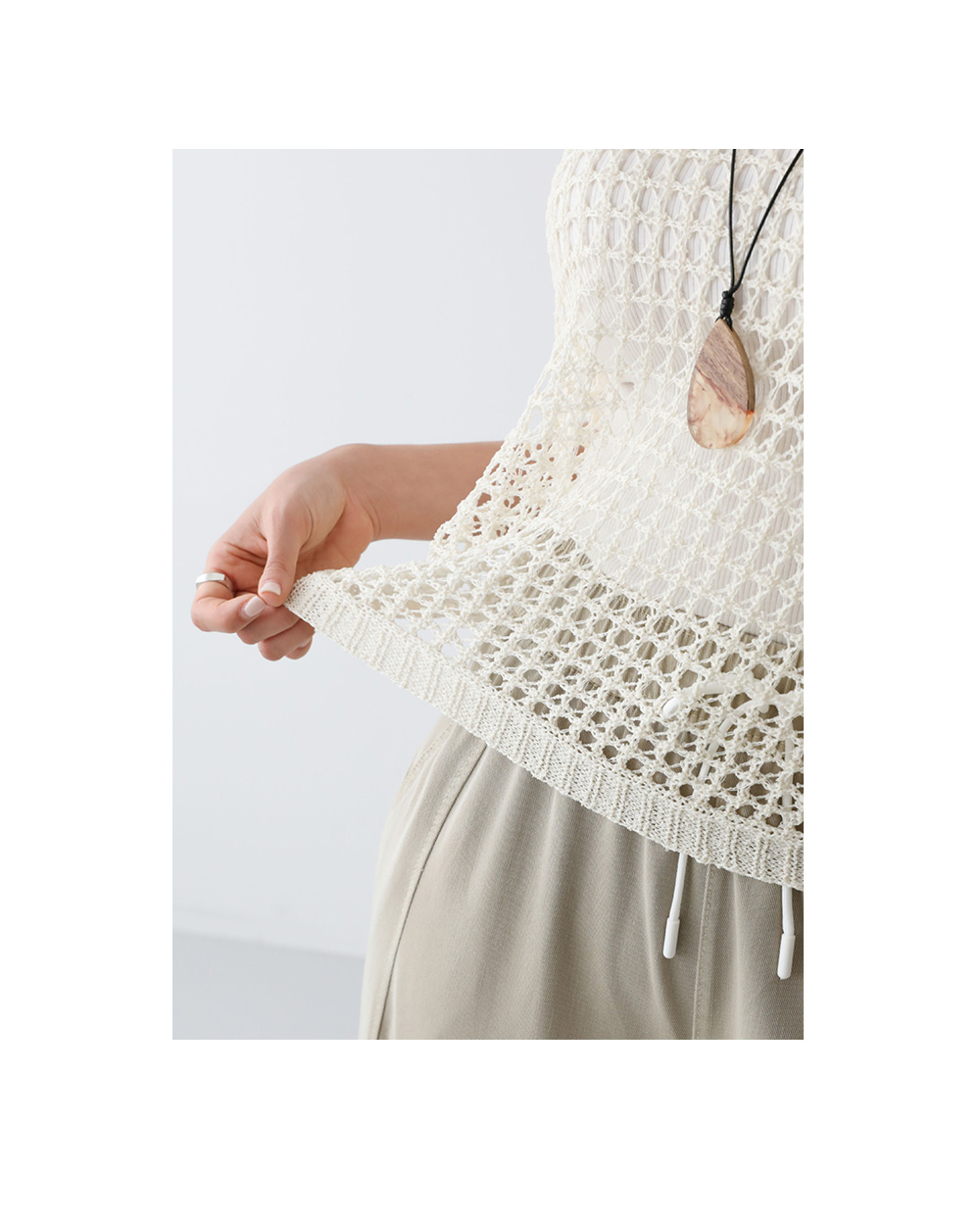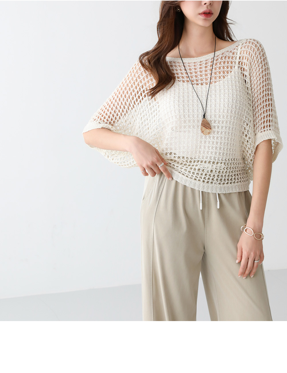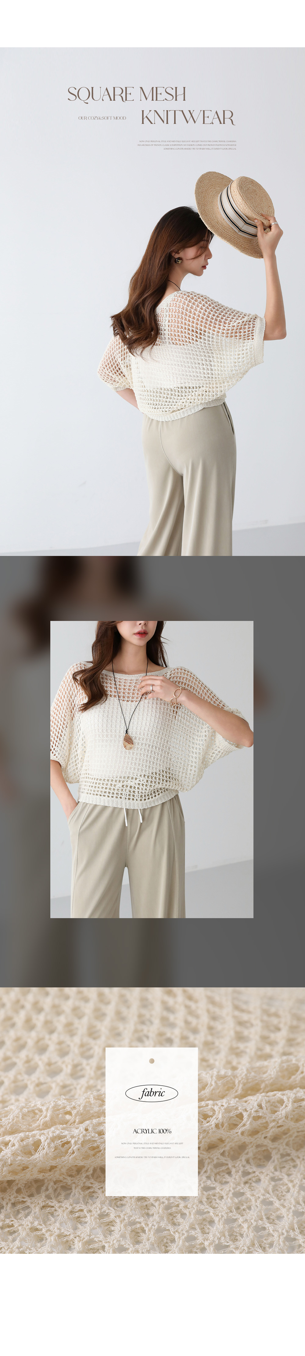 - 그물소재로 시원하게 연출 가능한 니트