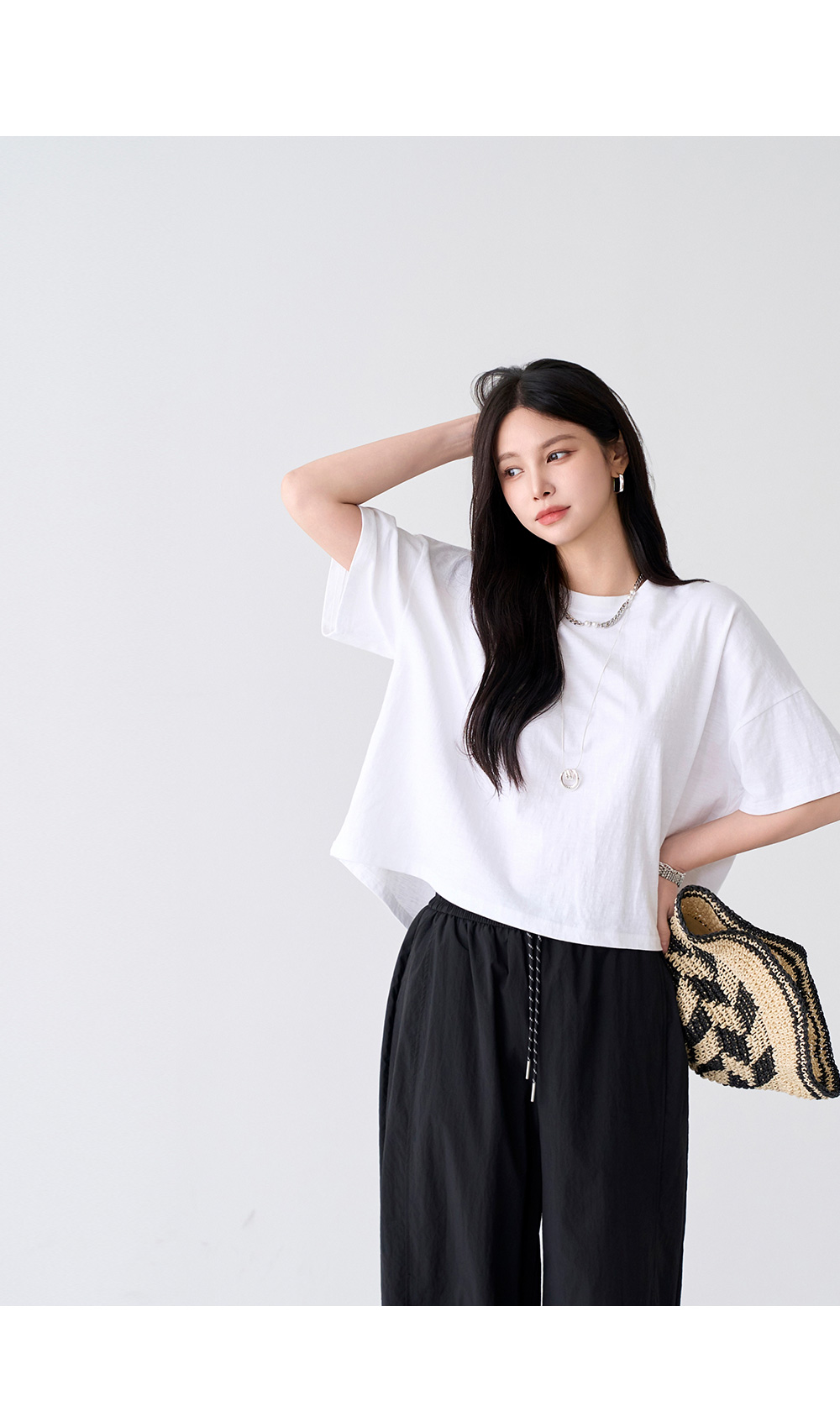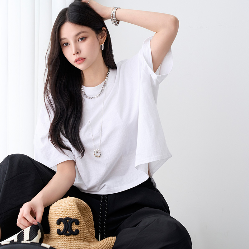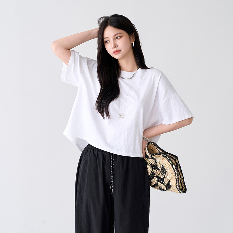 - 심플한 무지 크롭 티셔츠로 다양하게 활용 가능