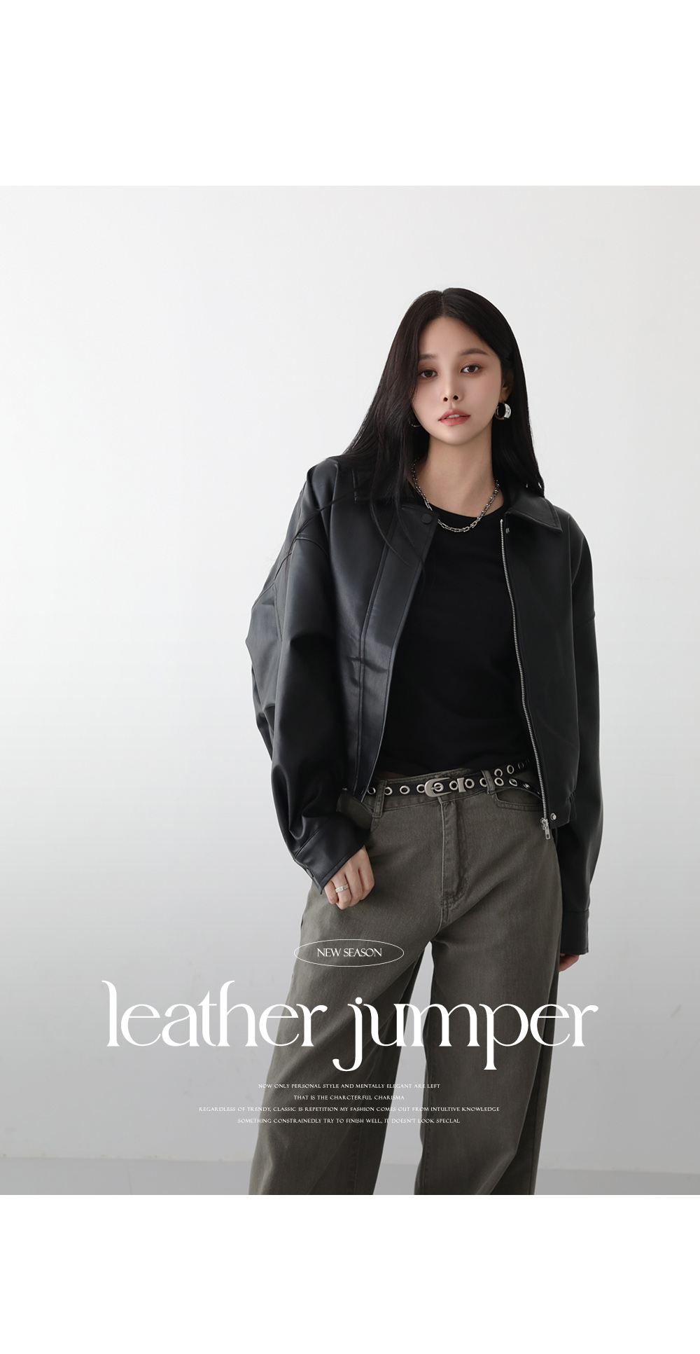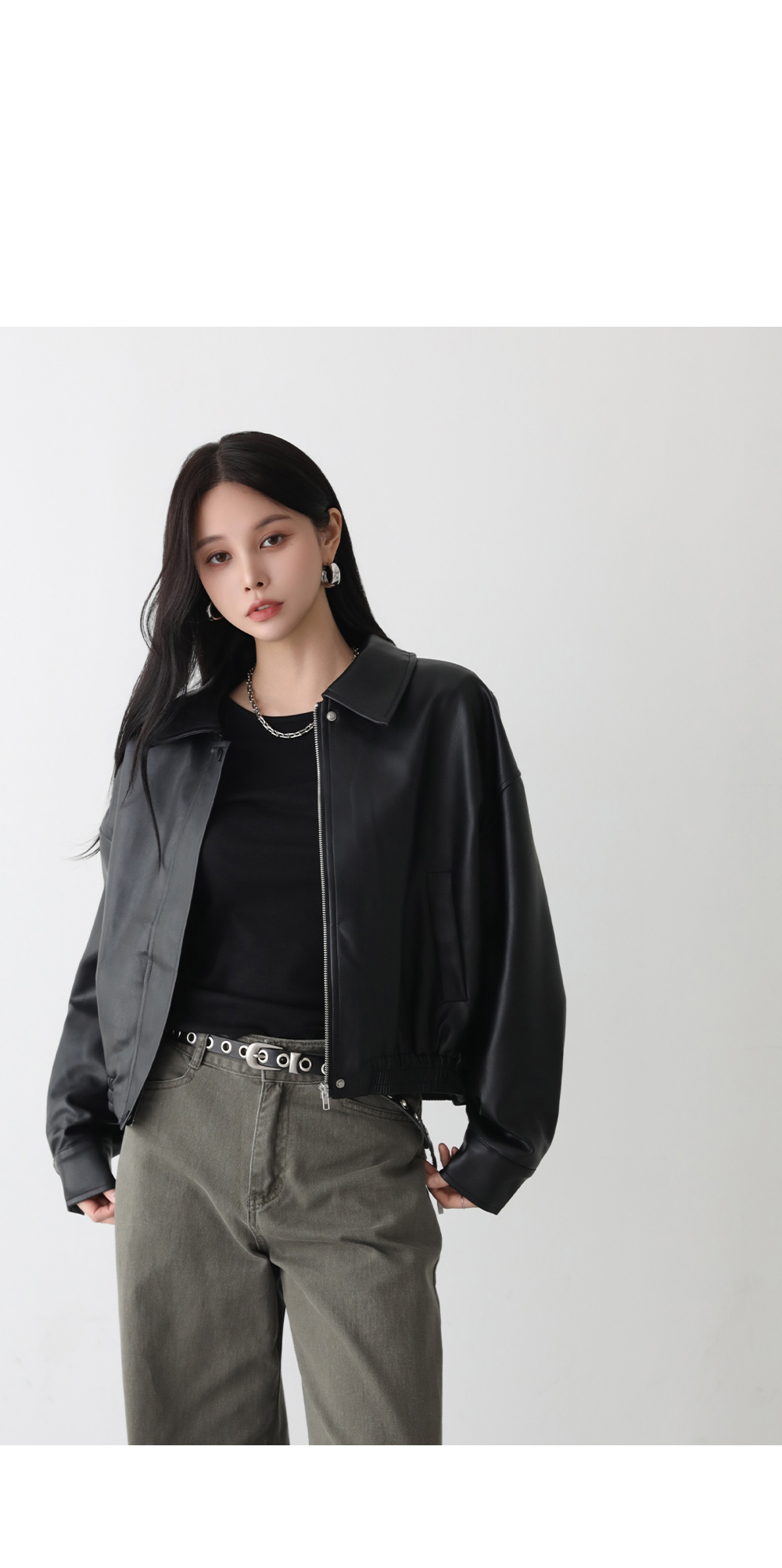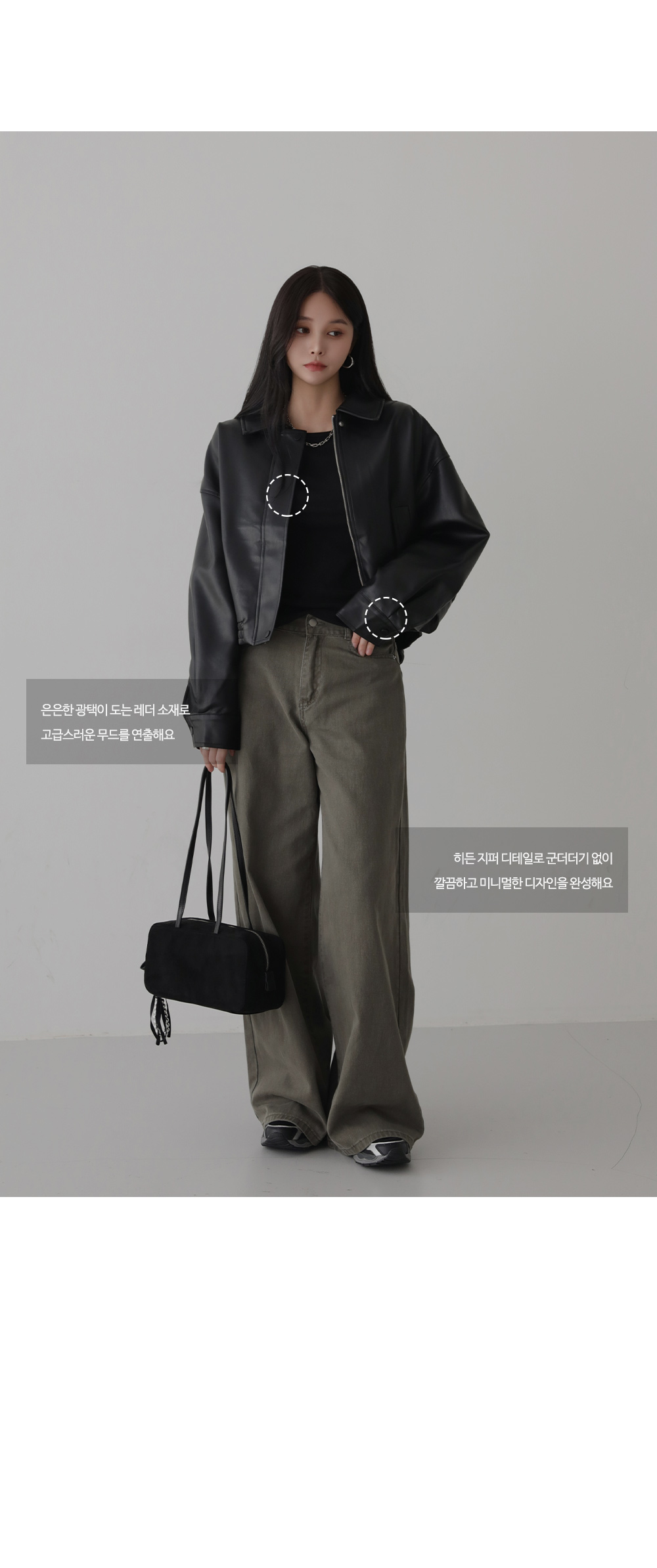 - 프론트는 히든 지퍼 + 스냅 버튼으로 마감해 미니멀함 강조