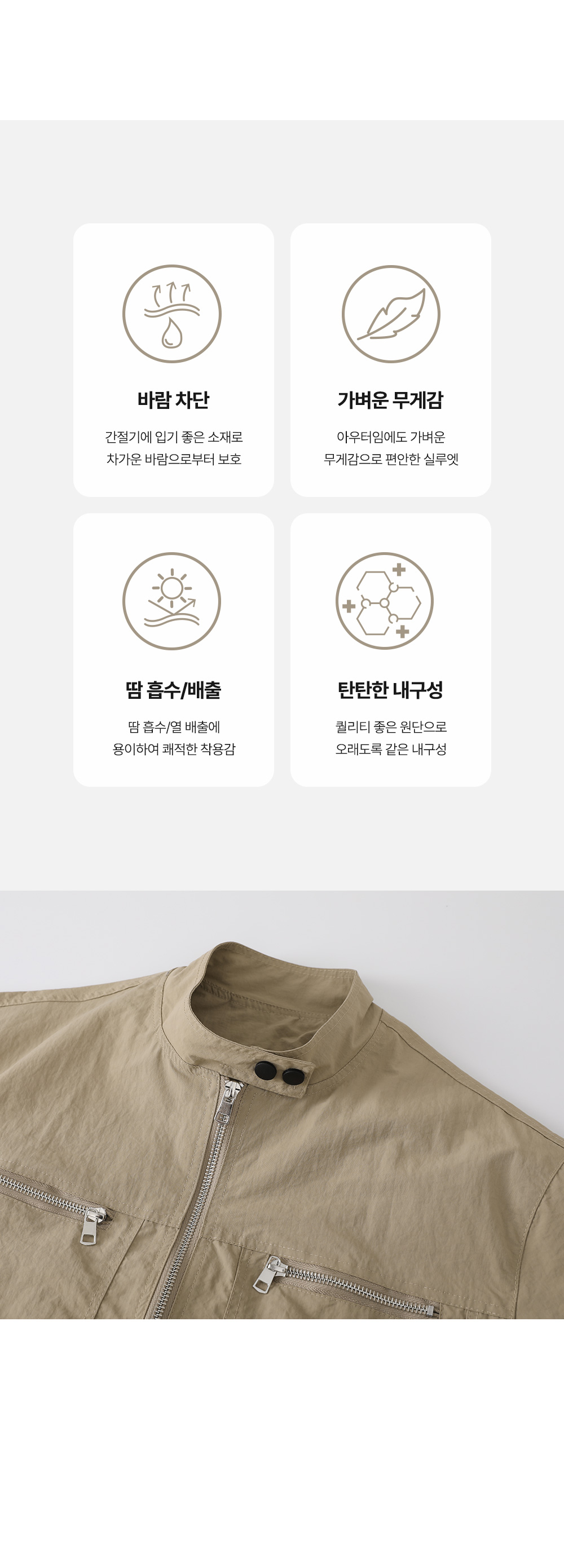 - 가볍고 바스락거리는 원단으로 제작되어 간절기에 착용하기 적합