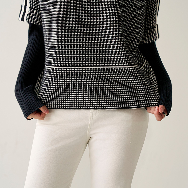 - 블랙&화이트 하운드투스 패턴으로 세련된 분위기를 연출