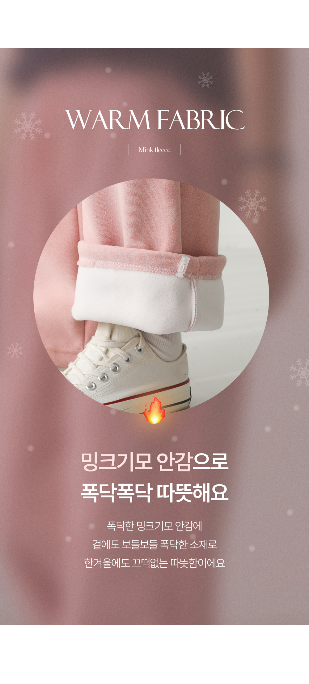 - 폭닥한 밍크기모 안감에 겉에도 보들보들 폭닥한 소재로 제작되어 따뜻한 착용감 선사