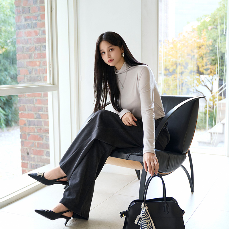 - 스판덱스가 함유된 원단으로 제작되어 찰랑거리는 유연함과 편안한 착용감을 동시에 제공