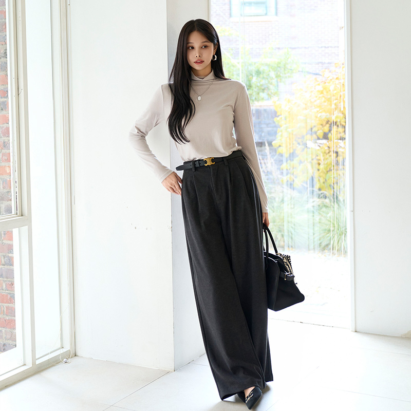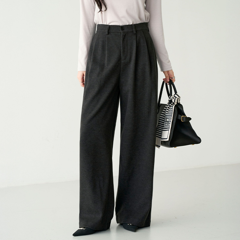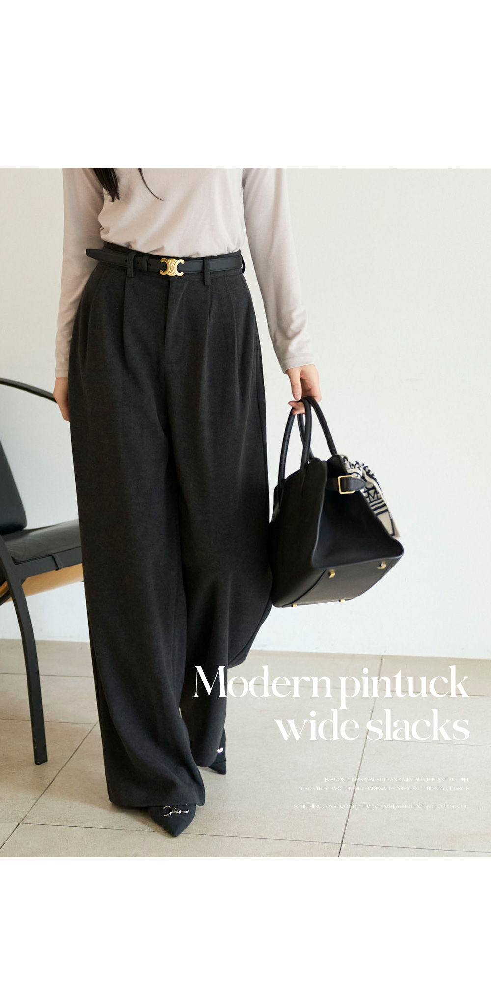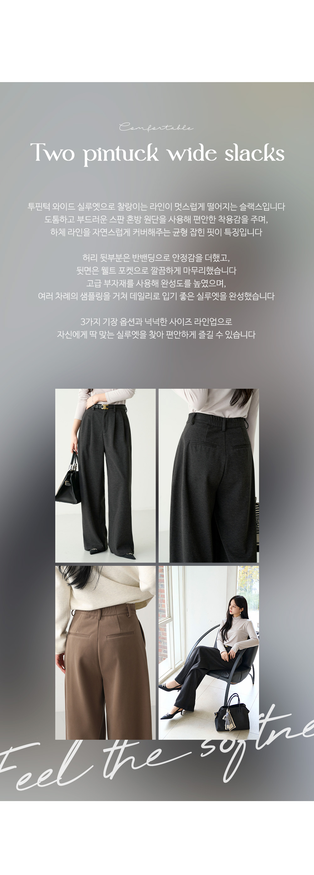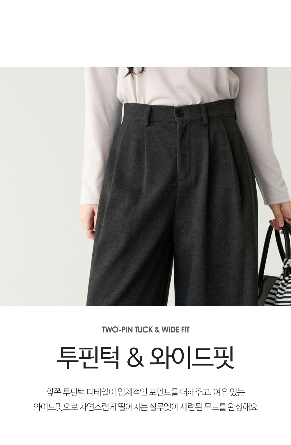 - 투핀턱 와이드 실루엣으로 하체 군살을 안정적으로 커버