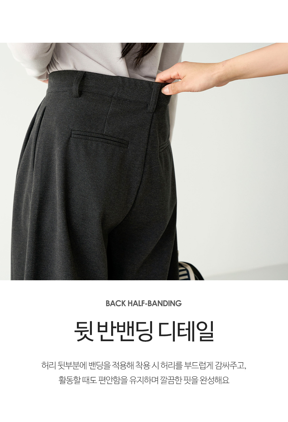 - 허리 뒷부분 반밴딩 디테일로 하루종일 편안하게 착용 가능