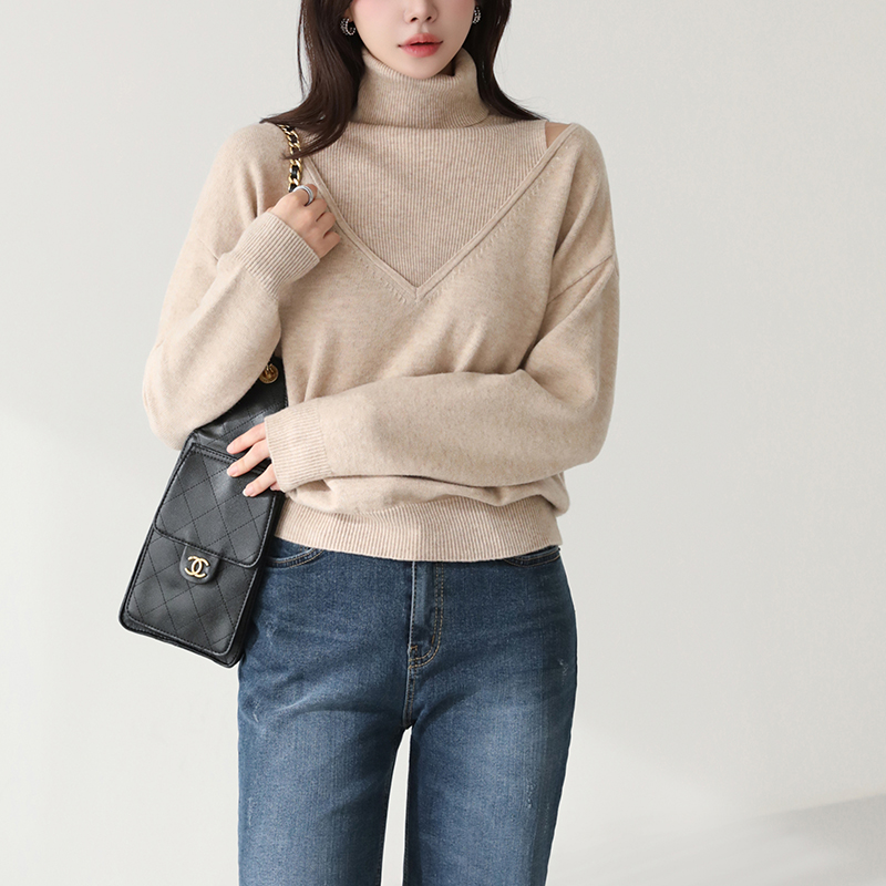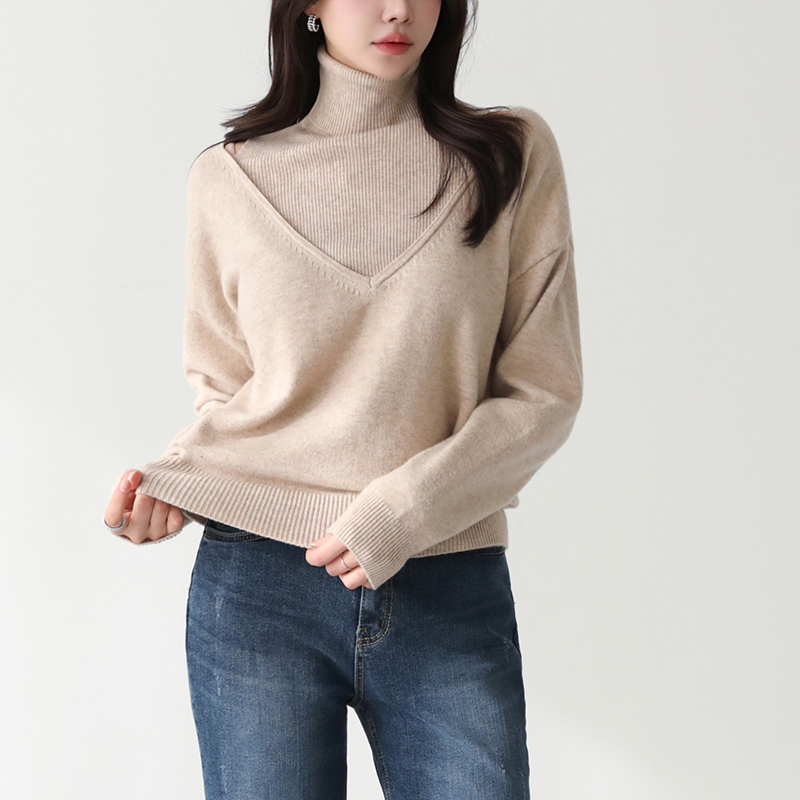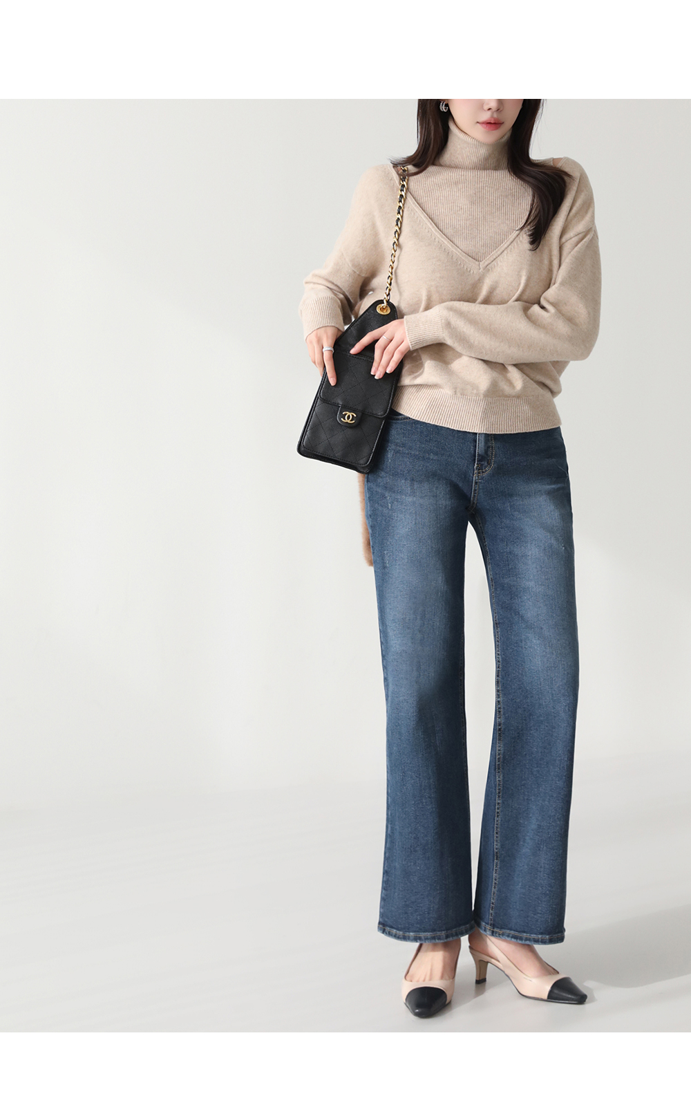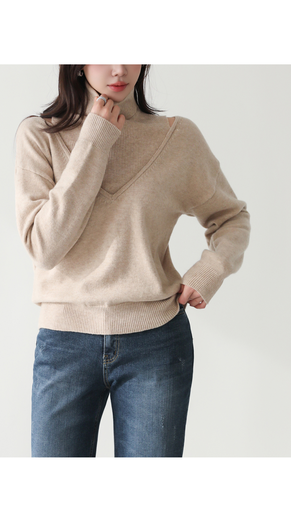 - 적당한 깊이감의 브이넥으로 단독은 물론, 폴라티나 셔츠와 레이어드하기에 좋음