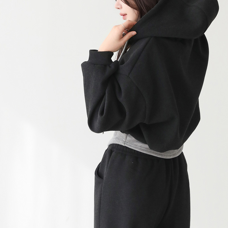 - 세미 크롭 후드지만 밑단 레이어드 티가 붙어있어 부담없이 캐주얼한 무드