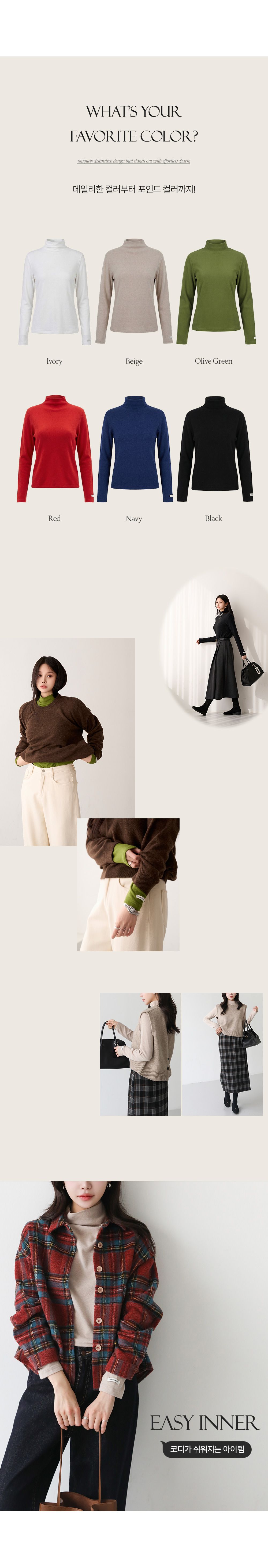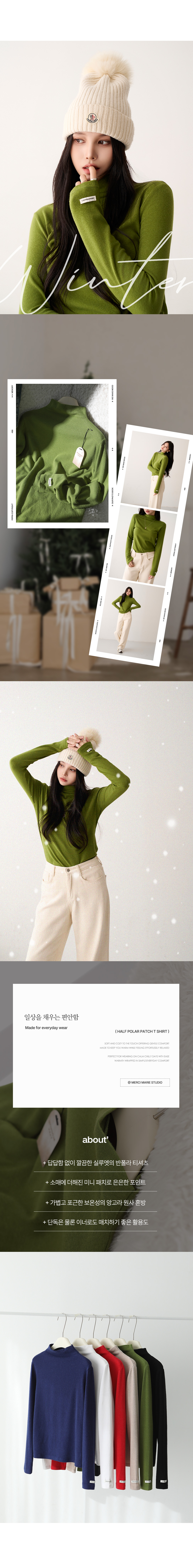 - 목을 자연스럽게 감싸주는 하프넥 디자인으로 보온성과 분위기 모두