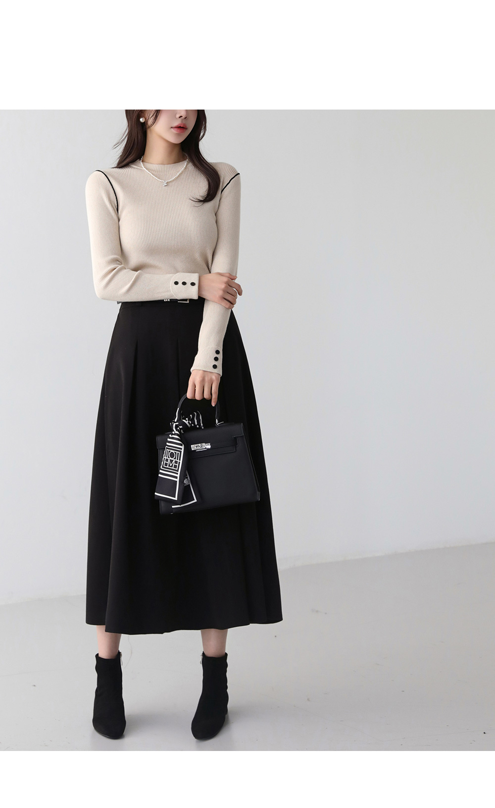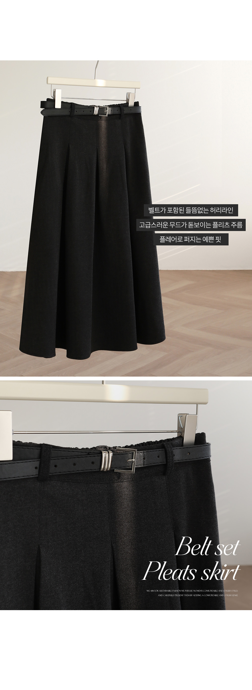 - 고급스러운 무드가 돋보이는 플리츠 주름 롱 스커트