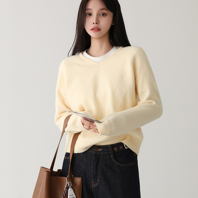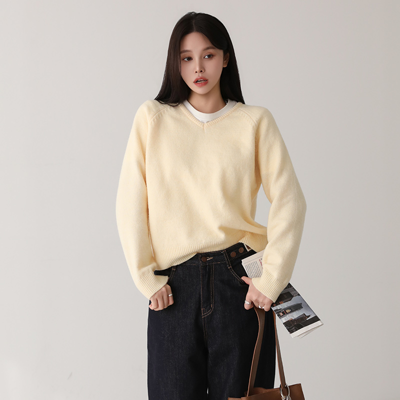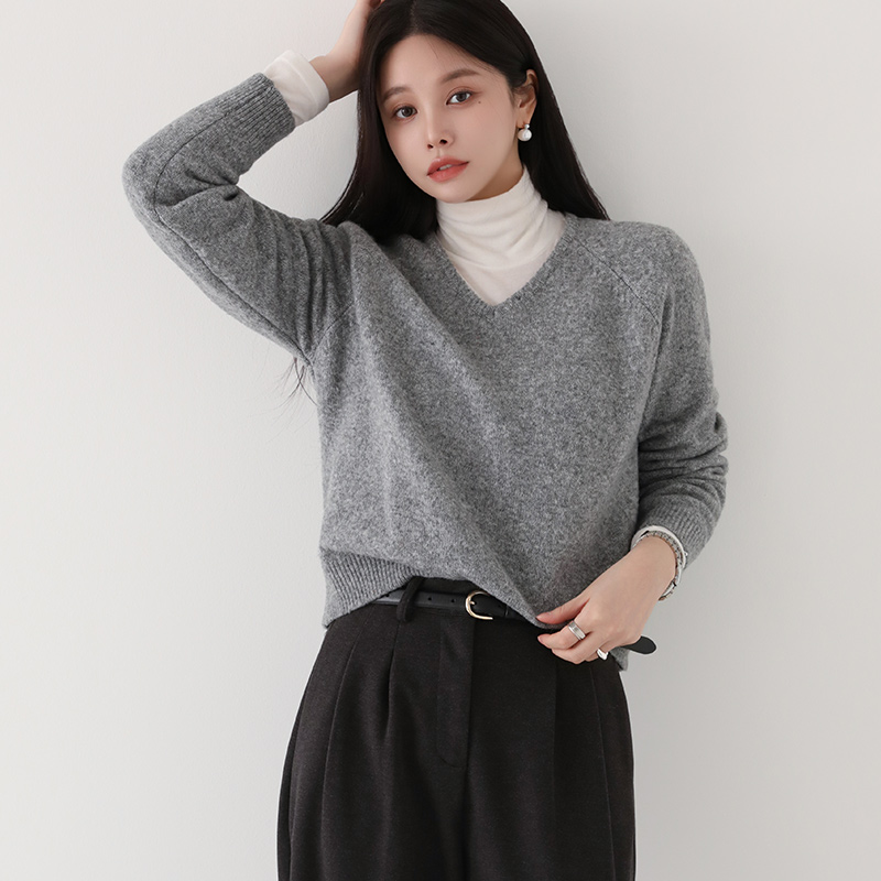 - 브이넥 디자인으로 목선을 길어보이게 해주어 여성스러운 무드