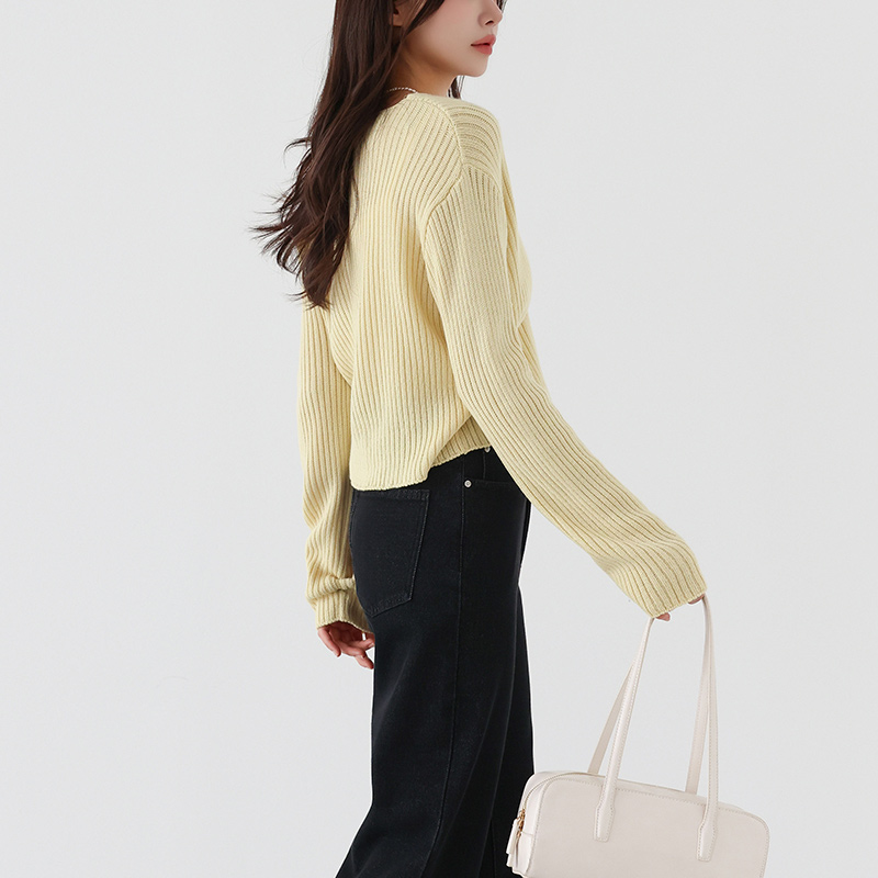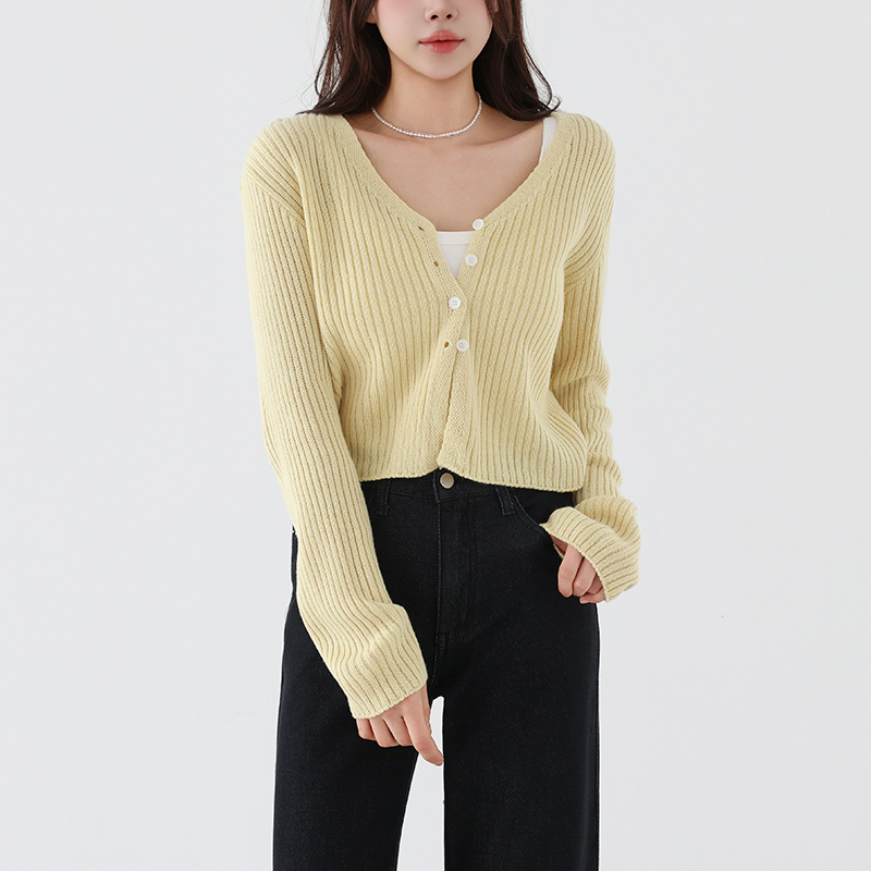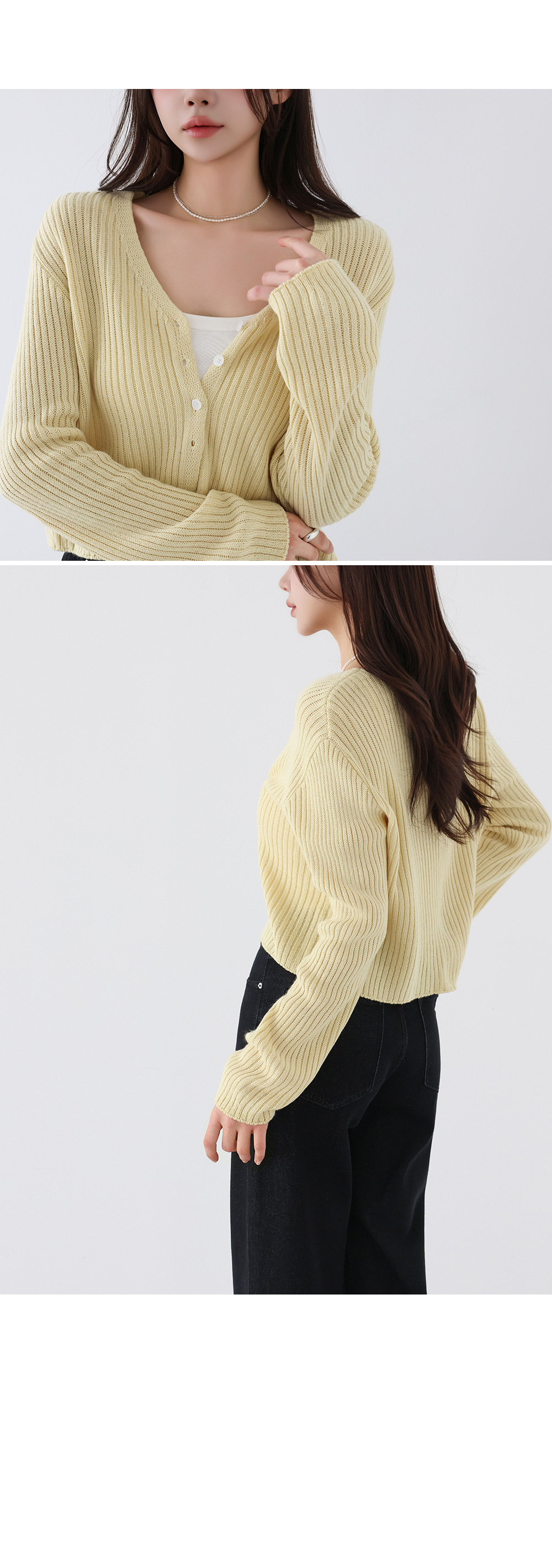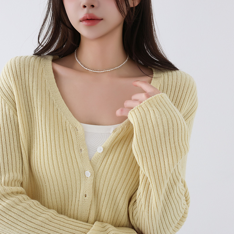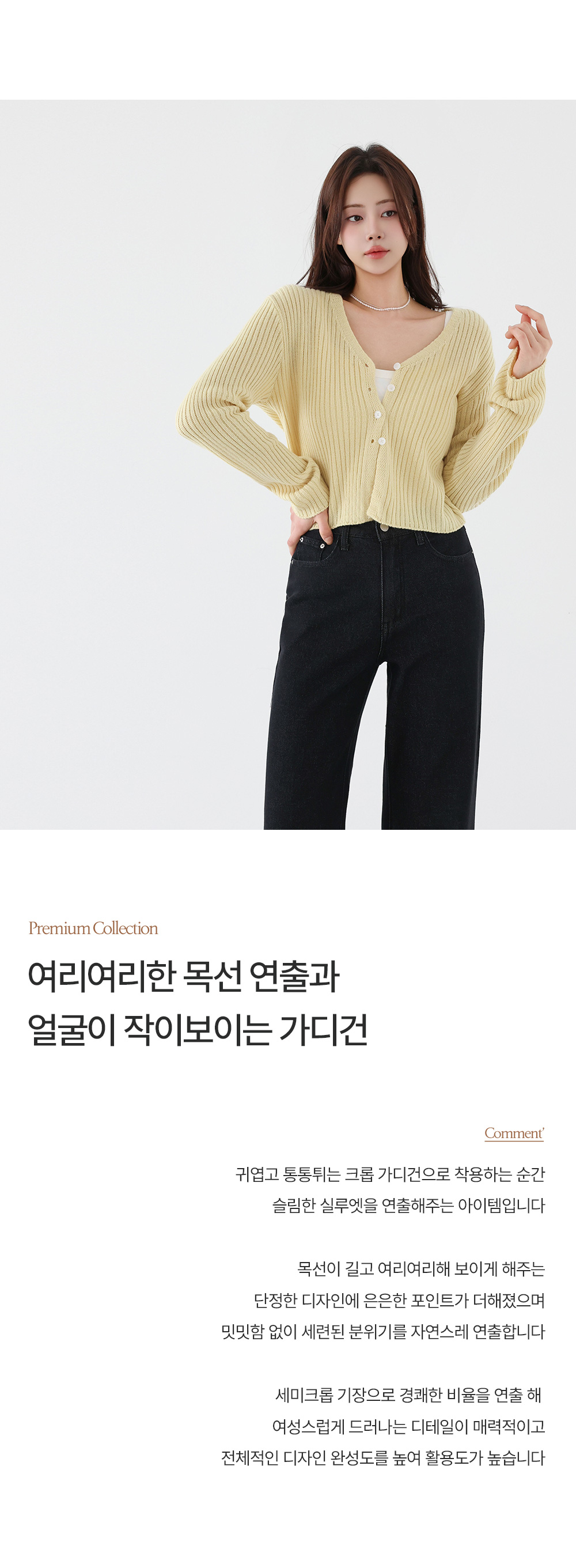 - 세로 골지 짜임으로 슬림한 실루엣을 연출해주는 데일리 가디건으로 활용 가능