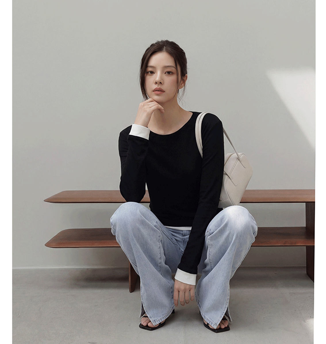 무지 레이어드 트임 긴팔티셔츠 #112525