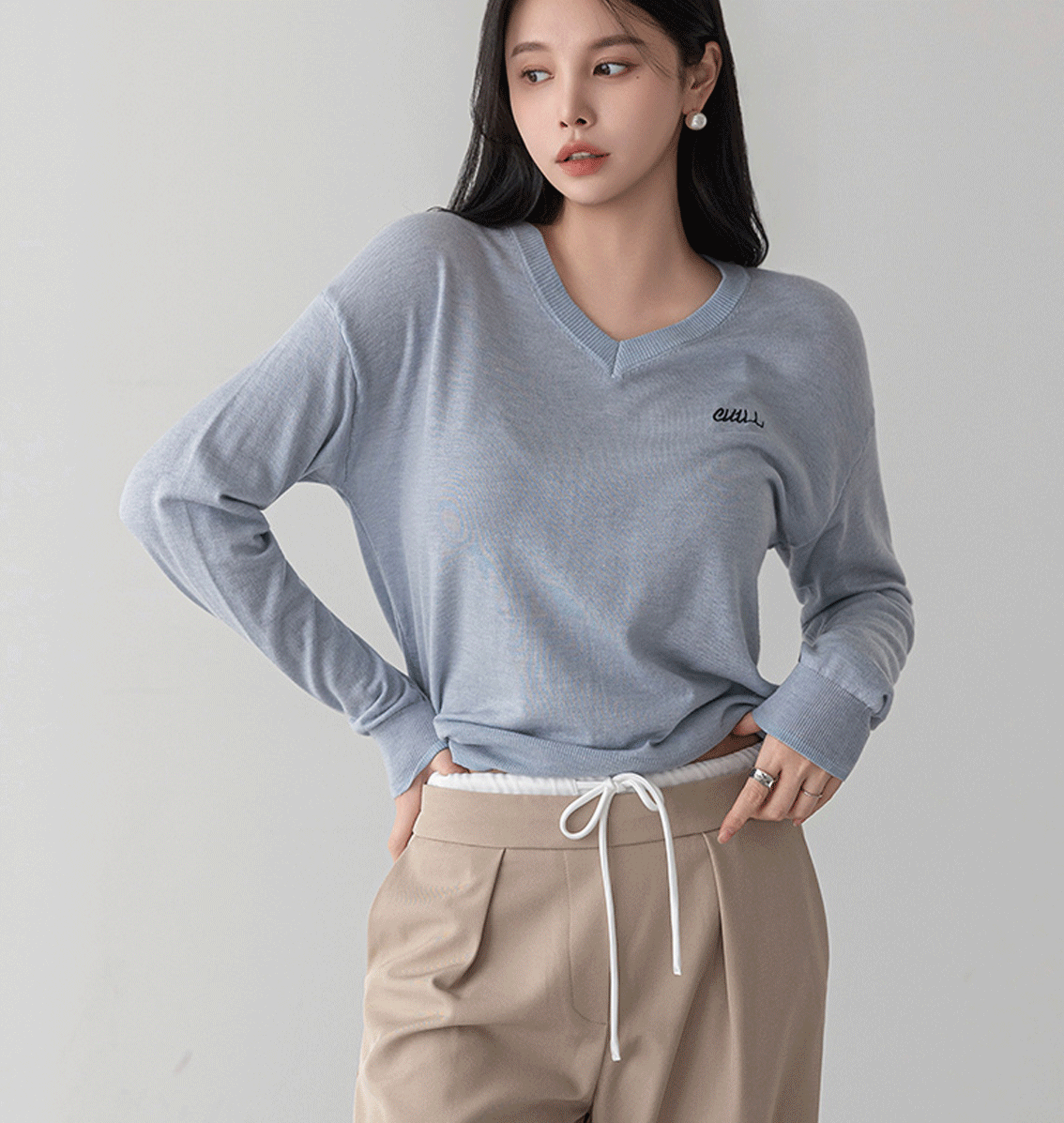 부담스럽지 않은 브이넥, 여유있는 핏