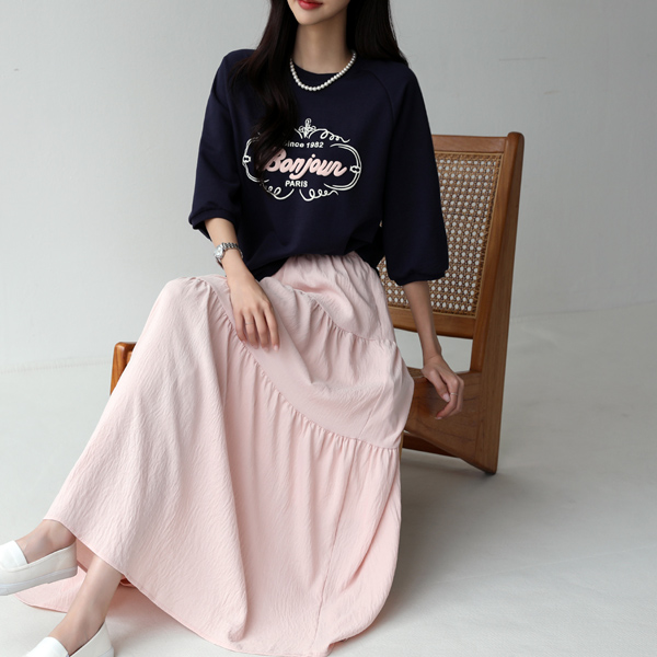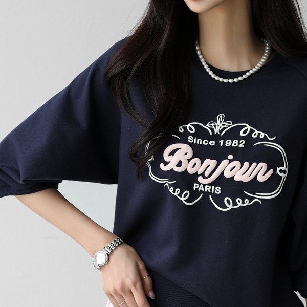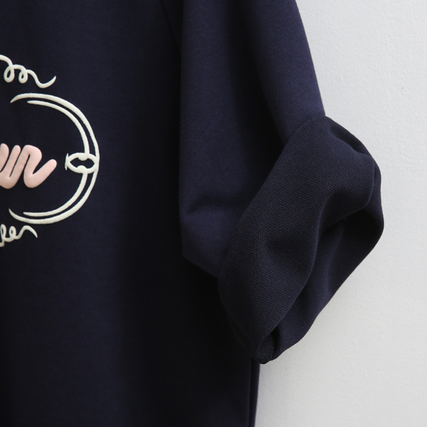 밑단시보리는 핏을 안정감 있게 잡아주고 프린트는 포인트를 쏙!