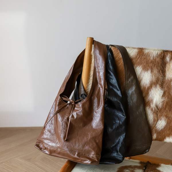 레더소재로 시크하고 자연스럽게 떨어지는 쉐입으로