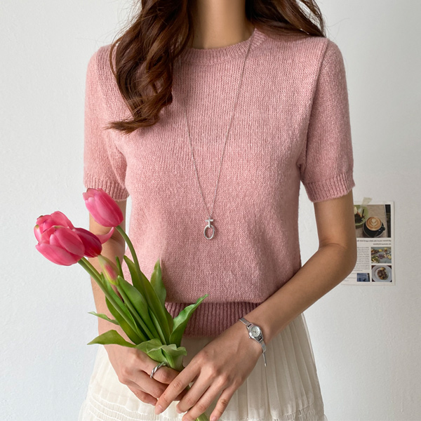 화사하게 입기좋은 베이직한 라인의 반팔 니트예요.