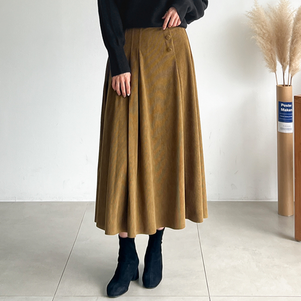 자체제작/ 코듀로이 핀턱 플레어 밴딩 스커트 #53293
