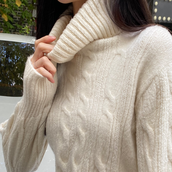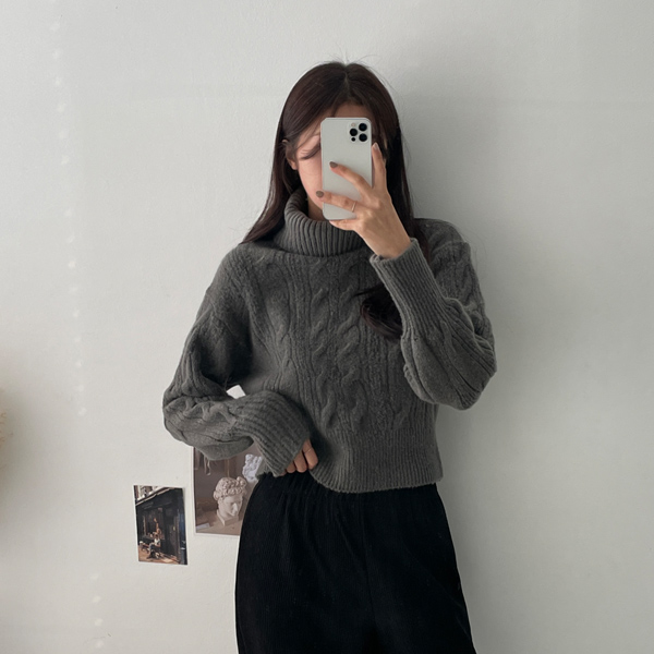 파인트 터틀넥 크롭꽈배기 니트 #110940