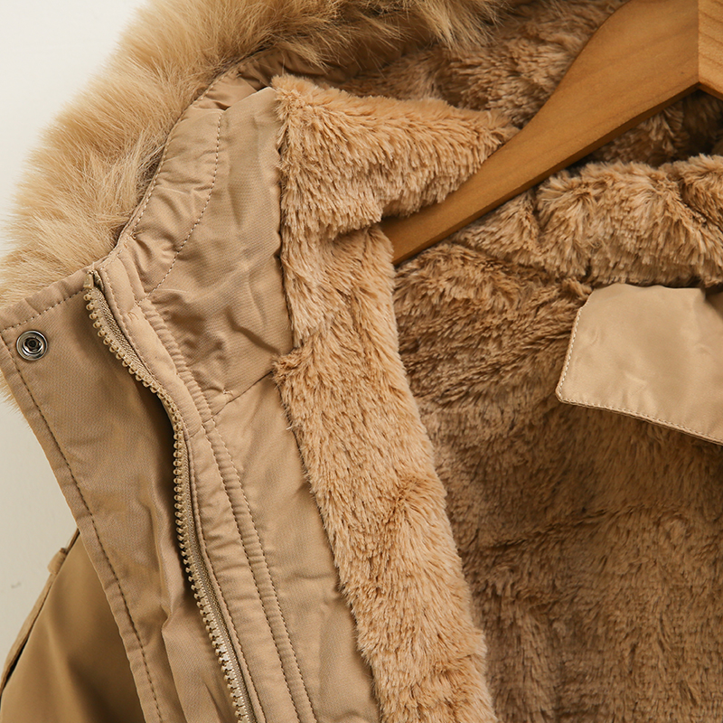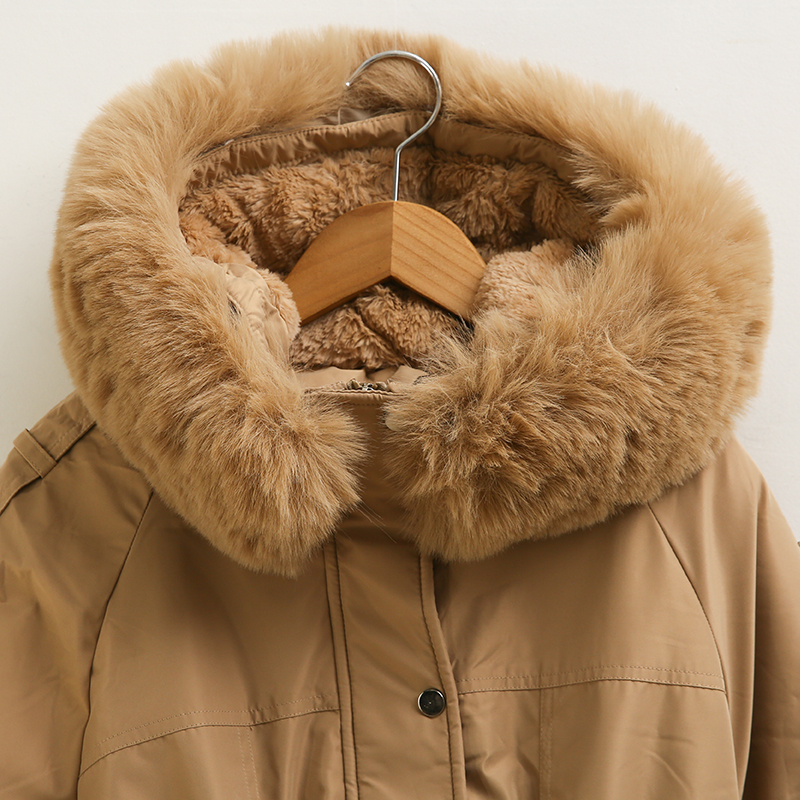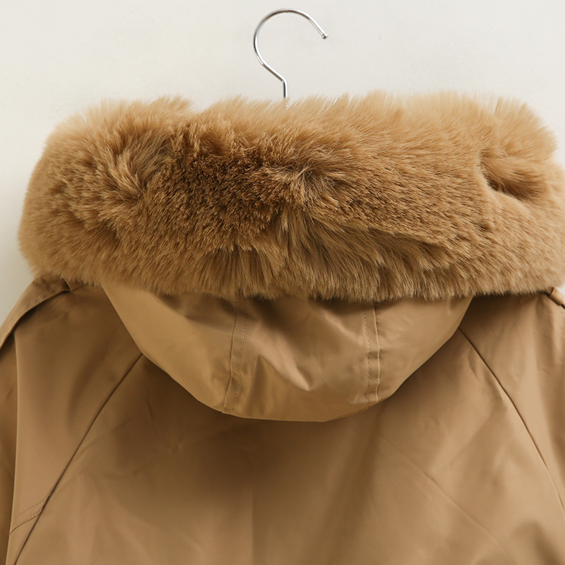후드라인에 퍼가 더해져 더욱 포근한 무드로 입어져요.