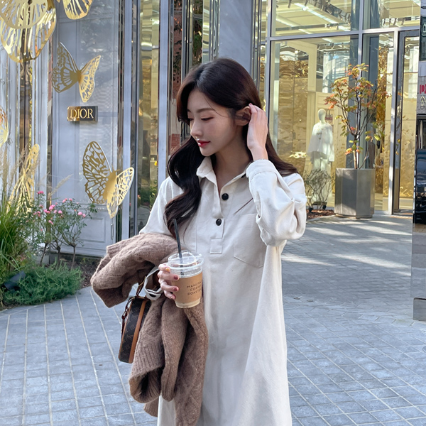 베이직한 디자인으로 데일리하게 즐기기 좋은 코튼 롱 셔츠 원피스 소개해요~
