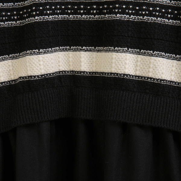 스커트가 시작되는 니트 밑단 안쪽에 셔링을 넣어
