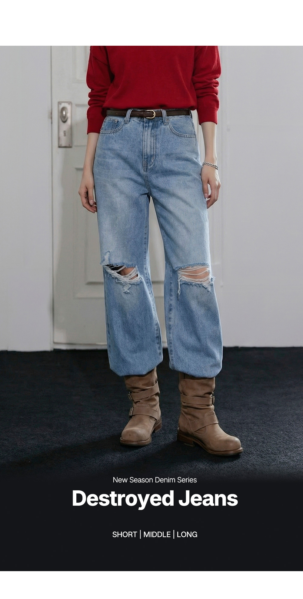 - 무릎파임으로 포인트를 줘서 스타일리시함